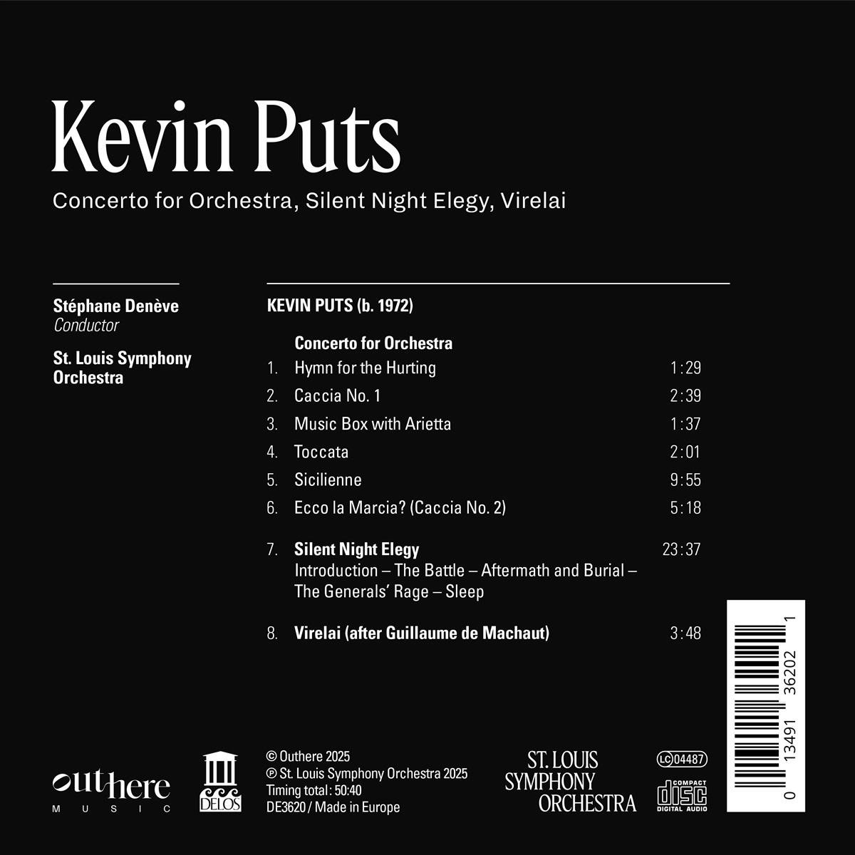 Delos freut sich, mit dem St. Louis Symphony Orchestra und seinem Musikdirektor Stéphane Denève eine neue Reise anzutreten. Für das erste Album bei Delos könnte es wohl kein besseres Statement geben als die Weltersteinspielung von drei Werken des aus St. Louis stammenden, mit dem Pulitzer-Preis und dem Grammy® ausgezeichneten Komponisten Kevin Puts zu veröffentlichen. Das dem SLSO und Stéphane gewidmete „Concerto for Orchestra" wurde als Reaktion auf die schreckliche Schießerei an einer Schule in Uvalde im Jahr 2022 geschrieben. „Silent Night Elegy" stammt aus Kevin Puts' gefeierter Oper, die den preisgekrönten Film Joyeux Noël adaptiert. Hier wird die Geschichte des spontanen Waffenstillstands an der Westfront an Heiligabend 1914 im Ersten Weltkriegs erzählt. Inspiriert von Guillaume de Machaut wurde „Virelai" für das Eröffnungskonzert von Stéphanes Amtszeit als Musikdirektor des St. Louis Symphony Orchestra in Auftrag gegeben. Dieses Album feiert die dynamische Partnerschaft des SLSO mit Stéphane und zeigt das Engagement des Orchesters für künstlerische Exzellenz und umfassende musikalische Erfahrungen.