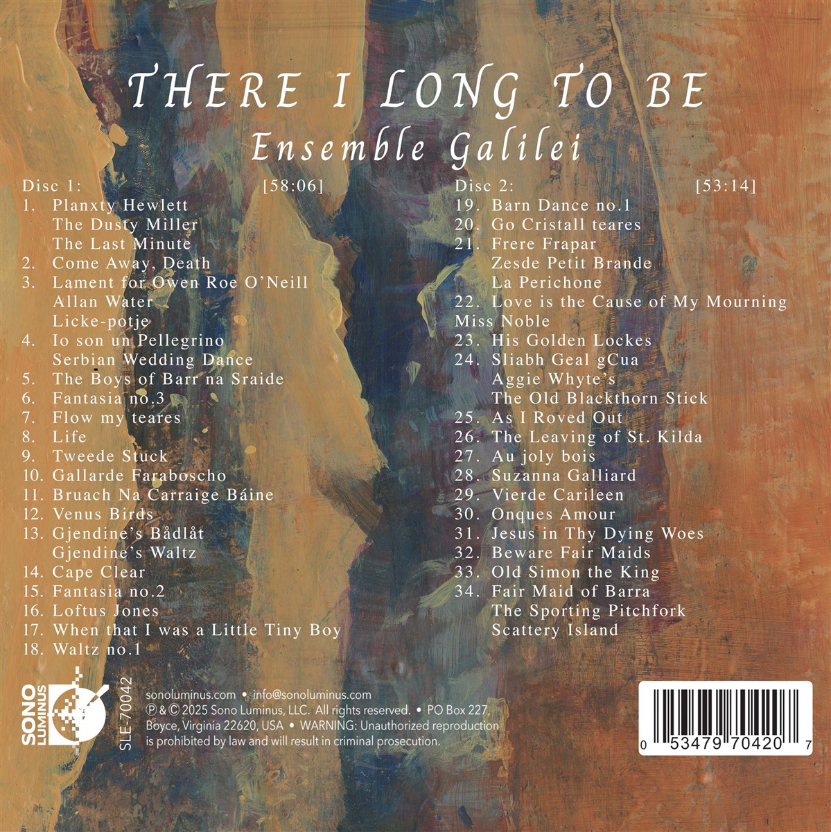 Am Schluss, wenn die Musiker ihr Herz, ihre Seele und ihre jahrelange Meisterschaft eingebracht haben, wenn das Aufnahmeteam mit Weisheit, Werkzeug, Geduld und gutem Willen in den Raum gekommen ist, wenn der ausführende Produzent sagt: ‚Klar, lass uns noch eine Session buchen, damit das das Beste wird, was es sein kann‘, dann besteht die Möglichkeit für den Zuhörer, alles zu hören – den Atem, die Absicht, das Zusammenspiel, den Solisten, die Finger auf den Saiten, die Luft, die aus der Blockflöte strömt, die Hände an den Reglern der Uilleann Pipes, den Tipper, der den Kopf der Bodhran berührt, das Kolophonium auf dem Bogen der Geige und das gefiederte Ende der Note auf einer Viola da Gamba. Es ist alles da. Das Ensemble Galilei spielt auf „There I Long to Be“ Stücke von Turlough O'Carolan, Carolyn Surrick, John Dowland, Isaac Alderson, Pieter de Vois und vielen anderen Komponisten sowie Volkslieder mit unbekannter Quelle.