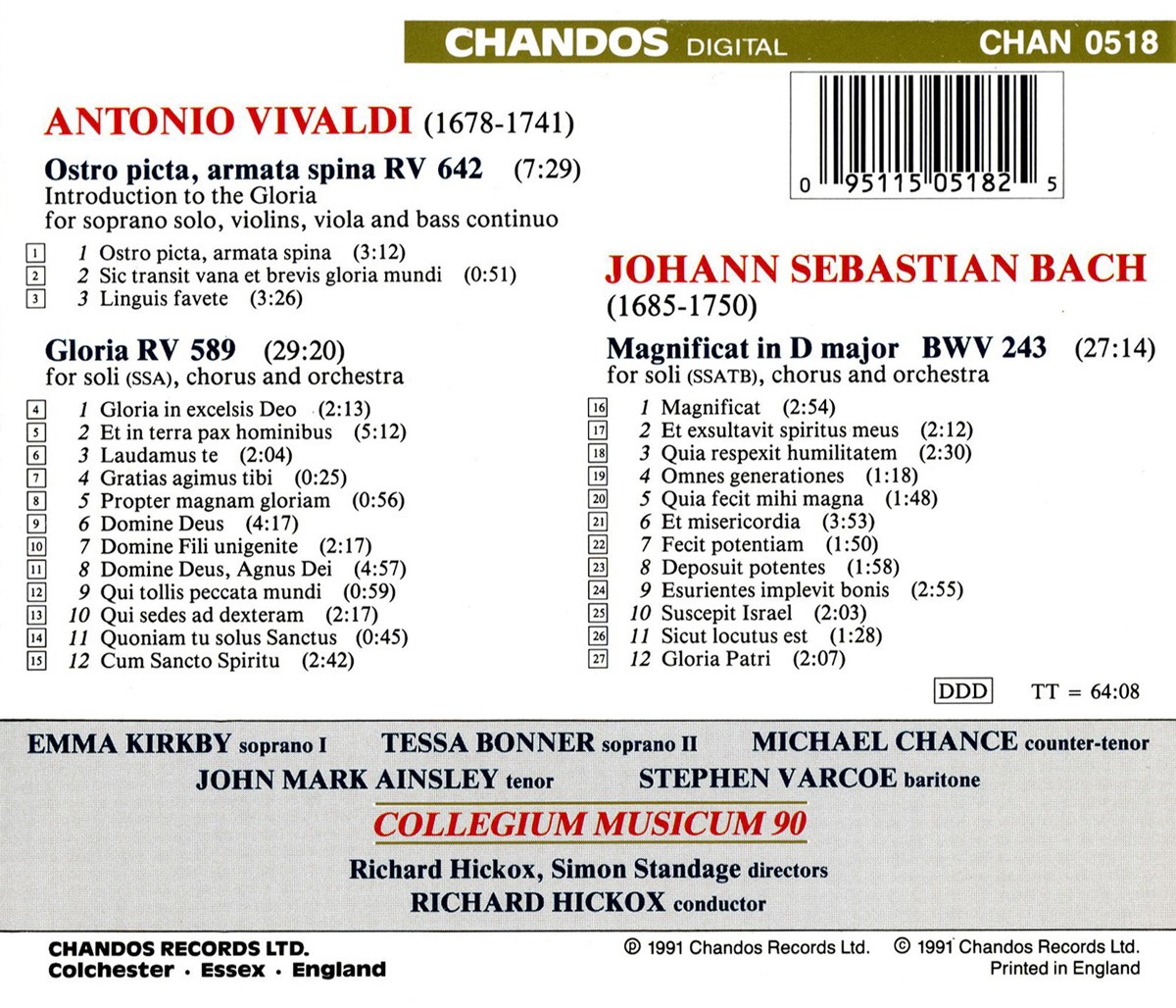 Ainsley, John Mark / Bonner, Tessa / Chance, Michael / Collegium Musicum 90 / Collegium Musicum 90 Chorus / Hickox, Richard / Kirkby, Emma / Varcoe, Stephen
