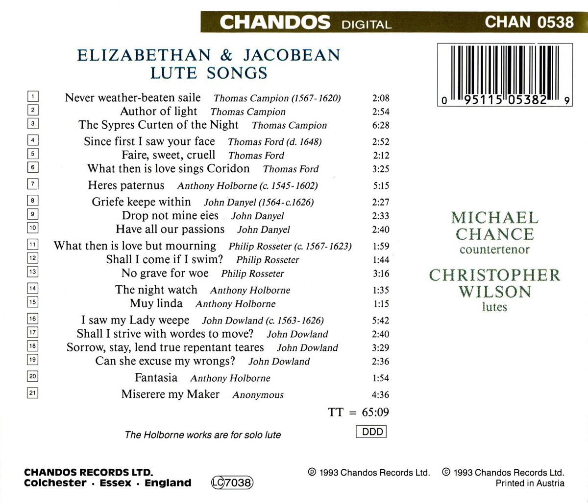 ELIZABETHAN&JACOBEAN LUTE SONG
