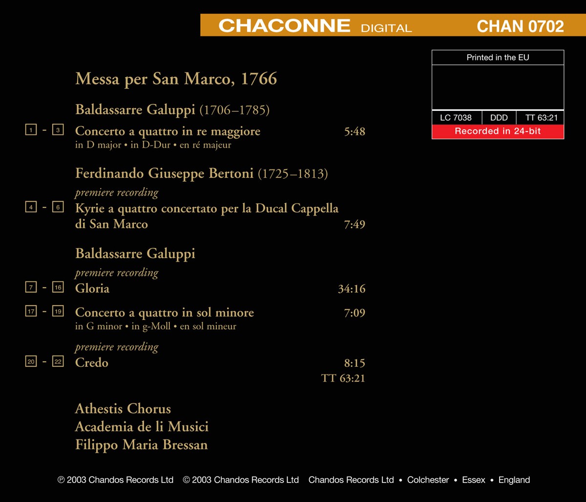 Academia de li Musici / Athestis Chorus / Bressan, Filippo Maria