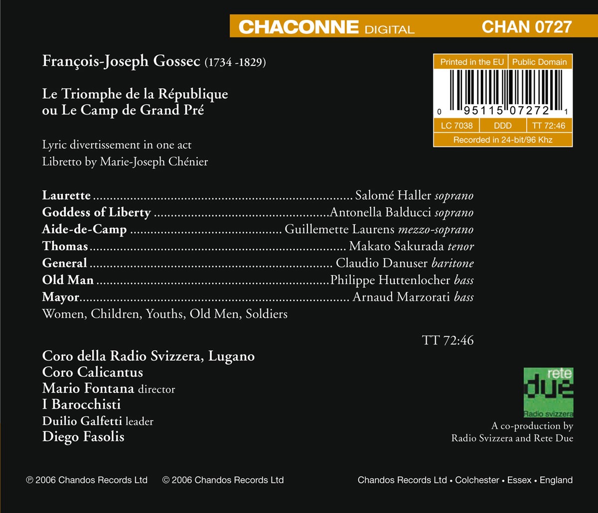 Balducci, Antonella / Barocchisti, I / Calicantus Choir / Danuser, Claudio / Fasolis, Diego / Haller, Salomé / Huttenlocher, Philippe / Laurens, Guillemette / Marzorati, Arnaud / Radio Svizzera Choir, Lugano / Sakurada, Makoto