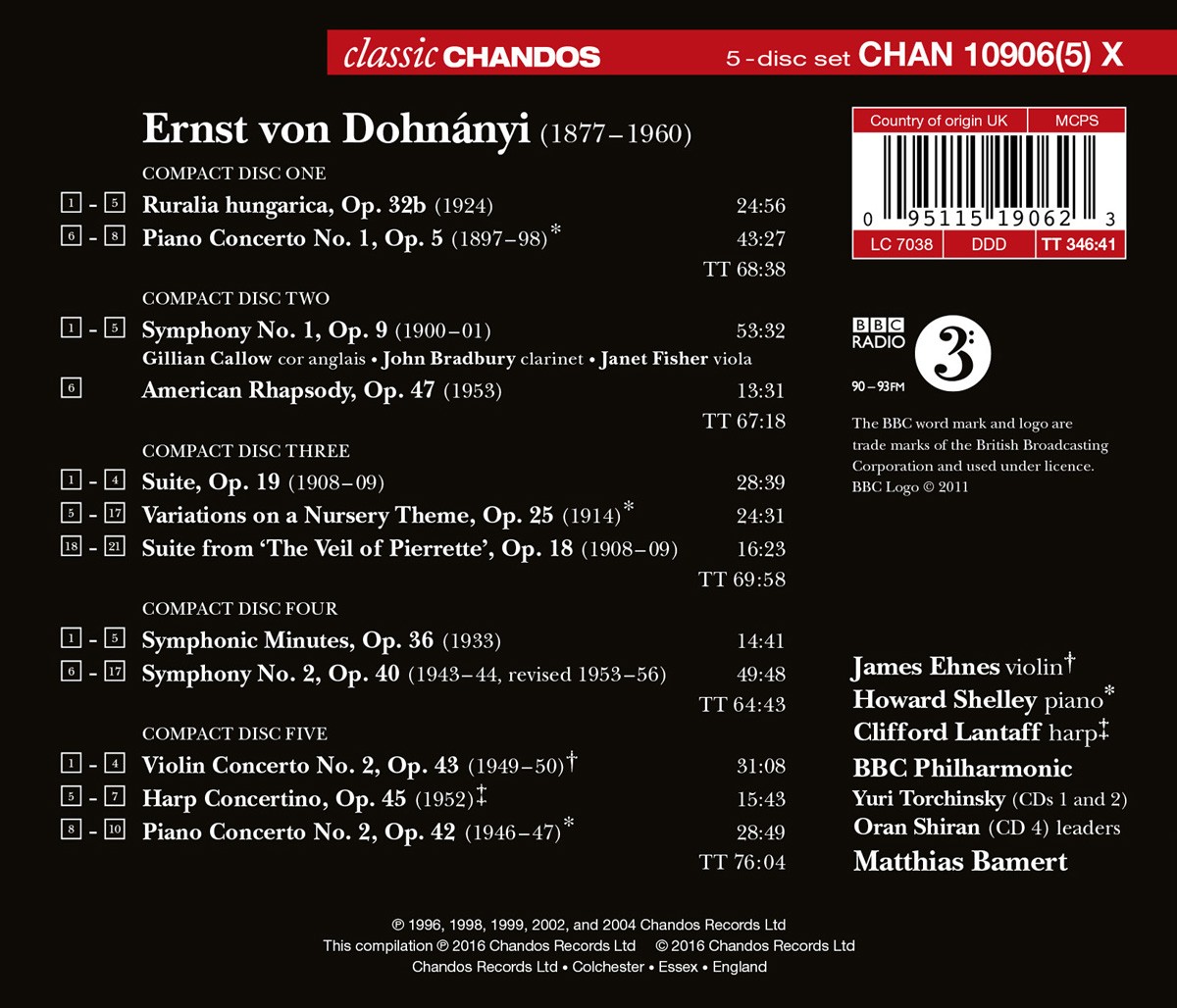 Bamert, Matthias / BBC Philharmonic Orchestra / Ehnes, James / Lantaff, Clifford / Shelley, Howard