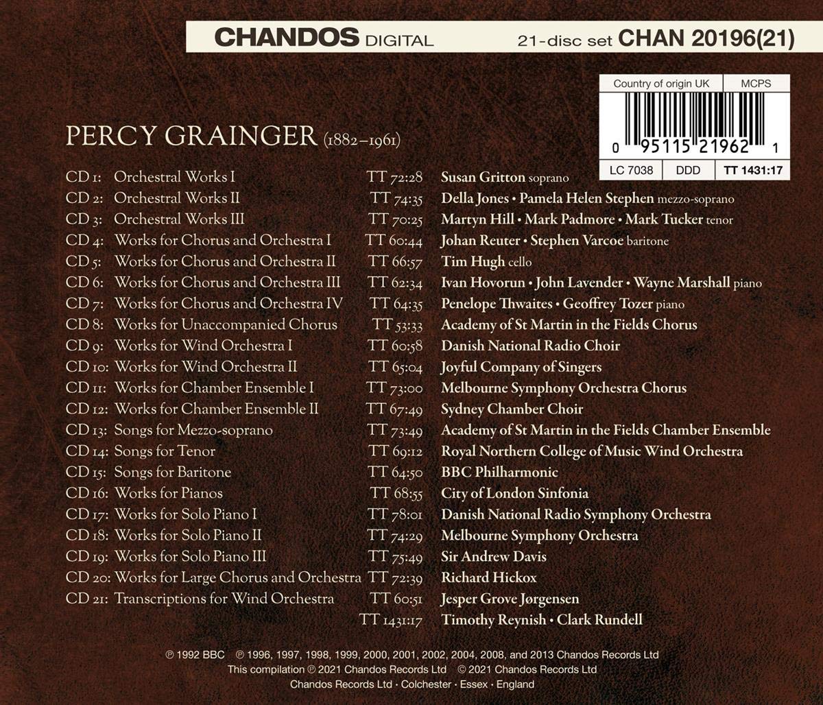 Academy of St. Martin in the Fields Chamber Ensemble / Academy of St. Martin in the Fields Chorus / BBC Philharmonic Orchestra / City of London Sinfonia / Danish National Radio Choir / Danish National Radio Symphony Orchestra / Davis, Andrew / Gritton, Susan / Hickox, Richard / Hill, Martyn / Hugh, Tim / Jones, Della / Joyful Company of Singers / Lavender, John / Marshall, Wayne / Melbourne Symphony Orchestra / Melbourne Symphony Orchestra Chorus / Padmore, Mark / Reuter, Johan / Reynish, Timothy / Royal Northern College of Music Wind Orchestra / Rundell, Clark / Stephen, Pamela Helen / Sydney Chamber Choir / Thwaites, Penelope / Tozer, Geoffrey / Tucker, Mark / Varcoe, Stephen