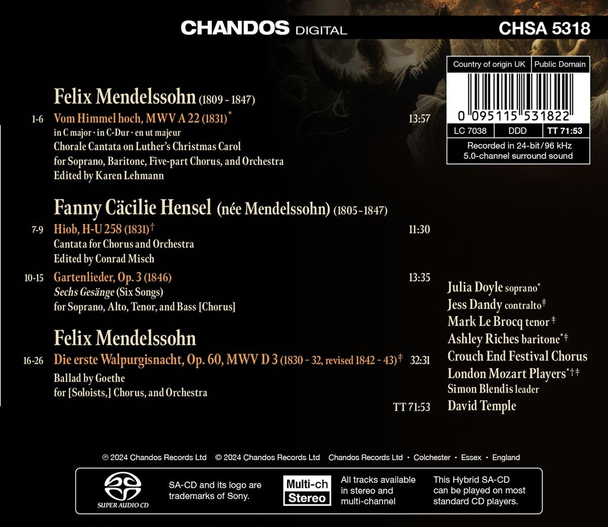 Mendelssohn: Die erste Walpurgisnacht, Vom Himmel hoch / Hensel: Hiob, Gartenlieder