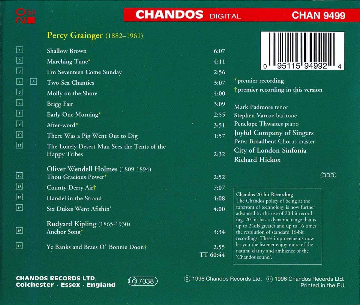 Archer, David / City of London Sinfonia / Dobing, Duke / Hickox, Richard / Joyful Company of Singers / Padmore, Mark / Pearson, Leslie / Thwaites, Penelope / Varcoe, Stephen / Watkinson, Andrew
