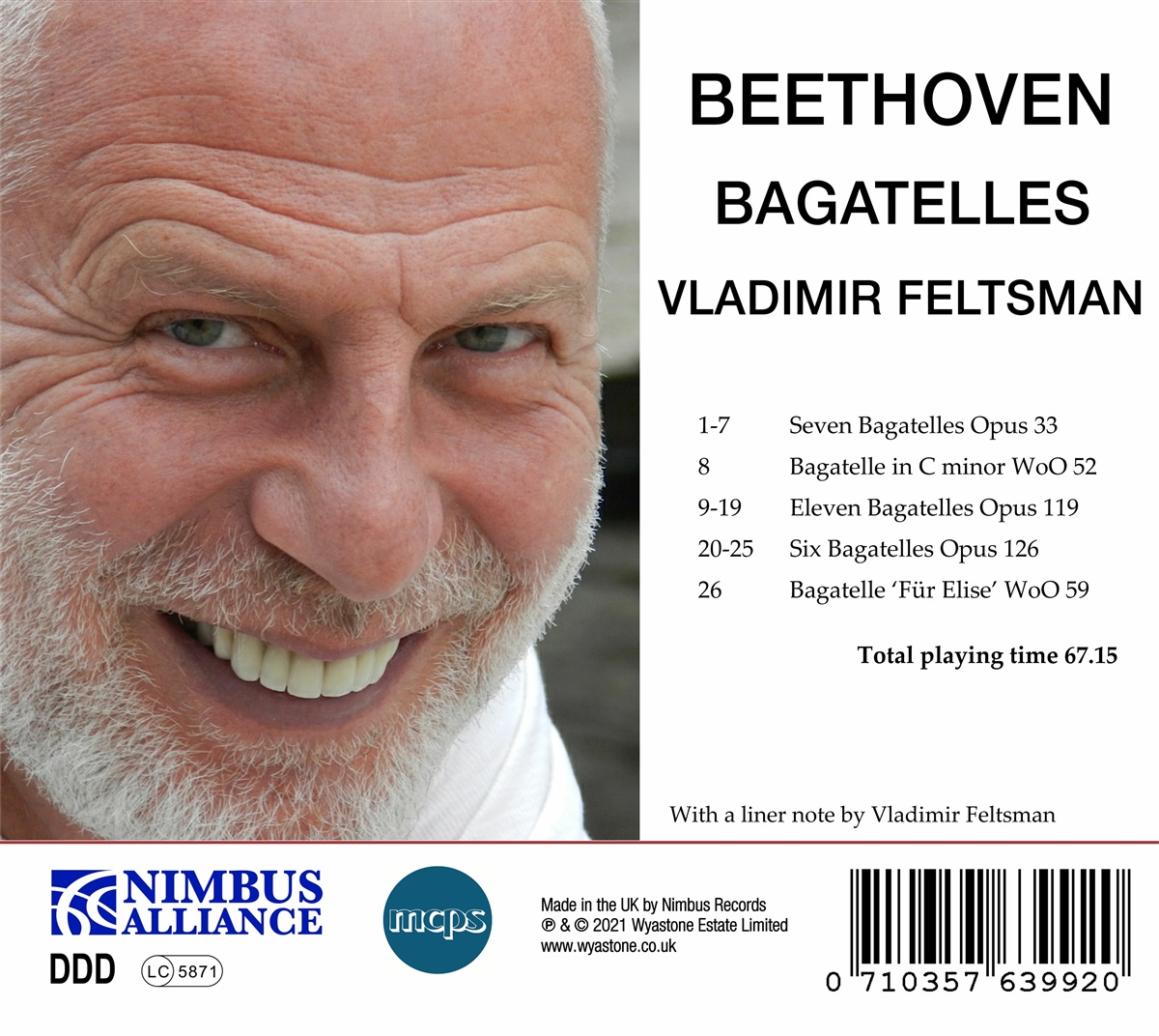 Feltsman legt nach ausgewählten Klaviersonaten und den Diabelli-Variationen nun sein fünftes Beethoven-Album vor, das sämtliche Bagatellen, darunter die drei Zyklen opp. 33, 119 und 126 und (natürlich) auch die berühmteste seiner Bagatellen, „Für Elise“, WoO 59 enthält.