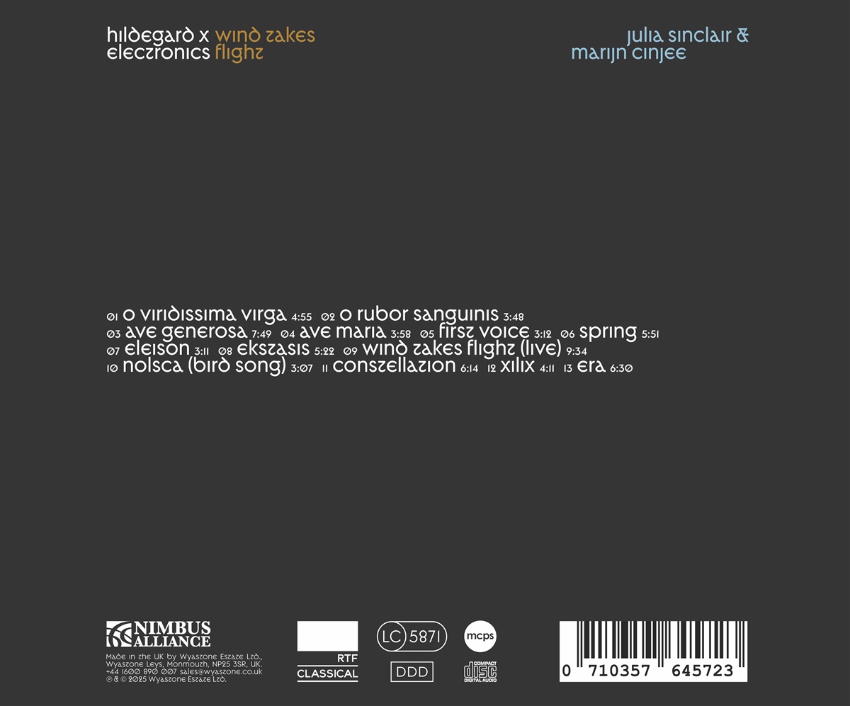 „Wind Takes Flight“ entstand aus einer einfachen, aber kraftvollen Idee: die Musik der Hildegard von Bingen, einer Mystikerin und Komponistin aus dem 12. Jahrhundert, durch die Linse moderner elektronischer Klanglandschaften neu zu interpretieren. Der Titel, der einem der heiligen Gedichte Hildegards aus dem Album entnommen ist, spiegelt auch ihre Liebe zu Vögeln und zur Natur wider. Die englische Sopranistin Julia Sinclair und der niederländische Elektronikmusiker Marijn Cinjee, ein niederländischer Elektronikmusiker waren von der zeitlosen Spiritualität und Schönheit von Hildegards Werk fasziniert. Im April 2023 präsentierten sie im Stone Nest in London eine experimentelle Live-Improvisation, inspiriert von Hildegards Hymne „O ignis Spiritus paracliti“, in einem immersiven Hörerlebnis mit mehr als 40 Lautsprechern, die vom 4DSOUND-Raumklangsystem angesteuert wurden. Die Reaktion des Publikums auf die schwebenden Gesangslinien und die immersiven elektronischen Texturen bestätigte, dass sie den Geschmack des Publikums getroffen hatten und diese Performance wurde zur Grundlage für „Wind Takes Flight“, den Titelsong des Albums. Das Album ist ein Dialog über die Zeit hinweg – beginnend mit Hildegards Gesängen und sich entwickelnd zu einer Liebeserklärung an ihre Musik, die ihre sakralen Kompositionen mit zeitgenössischem Sounddesign verschmilzt und dabei der tiefen Spiritualität und Ehrfurcht ihrer Musik treu bleibt. Die Live-Premiere des Albums in räumlichem Klang im Het Concertgebouw in Amsterdam war ein unvergessliches Erlebnis, das in der Dramatik und Schönheit von „Ekstasis“, einem eigens für diese Aufführung komponierten Stück, festgehalten wurde.