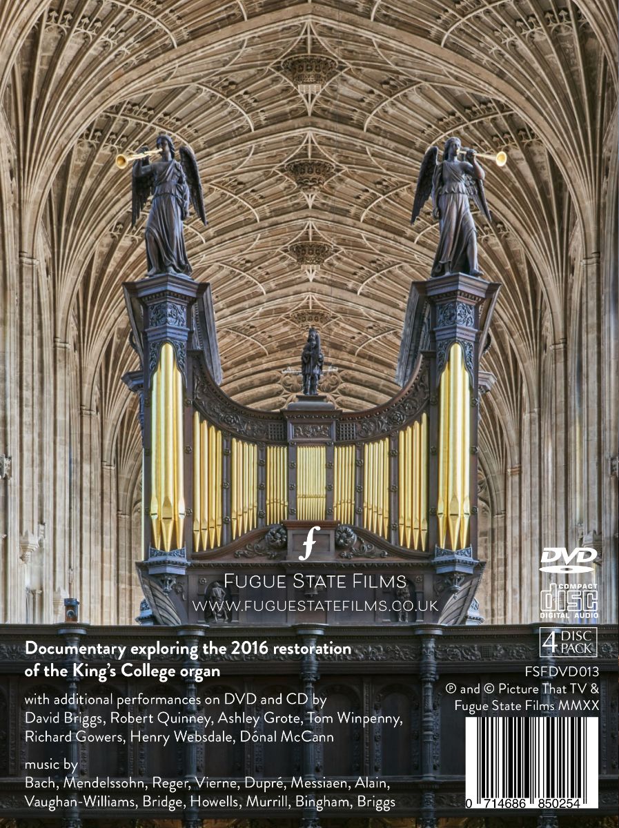 Gefilmt über eine Dauer von über einem Jahr, während aller Phasen der Restaurierung der legendären Harrison & Harrison-Orgel von 1934 im King's College in Cambridge, ist dies das ultimative Porträt eines der berühmtesten Musikinstrumente der Welt. Die Dokumentation wird präsentiert von David Briggs, einem der renommiertesten Organisten weltweit und ehemaligen Schüler des King’s College. Ergänzend zum Dokumentarfilm enthält das Boxset eine Reihe seltener, teilweise historischer Mitschnitte ehemaliger Titular- und Gastorganisten an der imposanten Orgel.
