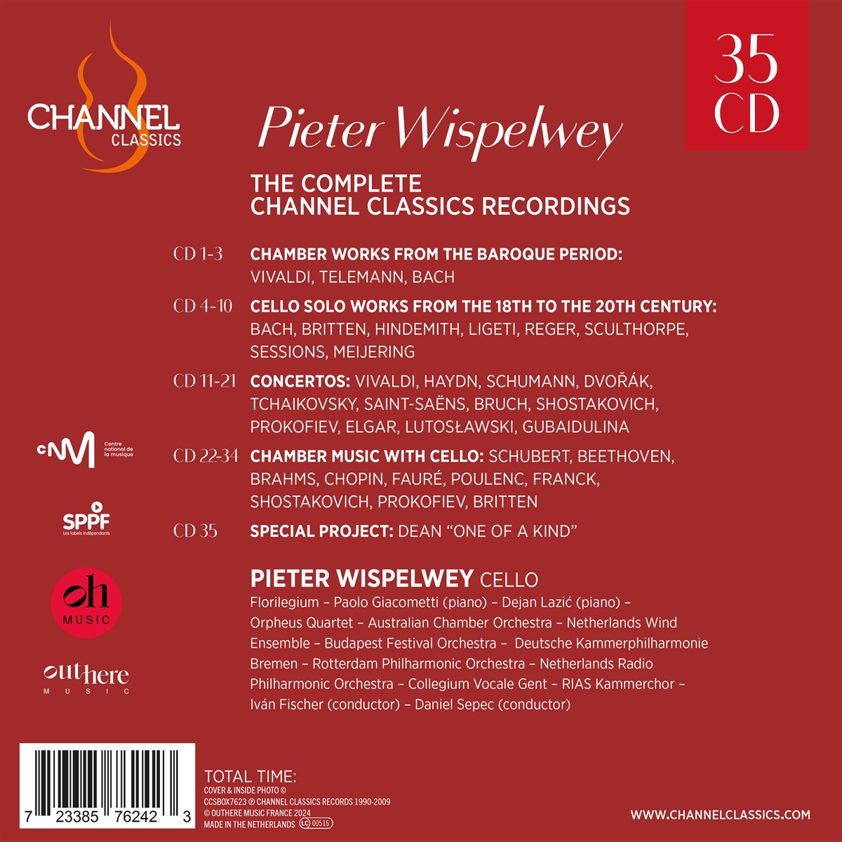 Diese Box vereint alle Aufnahmen, die der Cellist Pieter Wispelwey (ein Schüler von Dicky Boeke und Anner Bylsma) zwischen 1990 und 2009 für Channel Classics gemacht hat: 35 Aufnahmen in 20 Jahren stellen eine beeindruckende Vielfalt des Repertoires dar. Die großen Meisterwerke des Solorepertoires, von den Bach-Suiten, die zweimal aufgenommen wurden bis hin zu den Werken von Benjamin Britten. Dazu Kompositionen von Max Reger, Zoltán Kodály, George Crumb, Paul Hindemith und Sofia Gubaidulina, sowie alle großen Konzerte (Joseph Haydn, Antonín Dvořák, Robert Schumann, Edward Elgar, Dmitri Schostakowitsch, Sergei Prokofjew, Witold Lutosławski) sowie eine prächtige Anthologie der Kammermusik, darunter Werke von Beethoven und Brahms. Diese Anthologie ermöglicht es uns, einerseits die Vorlieben des niederländischen Cellisten für seine Instrumente erleben zu können und andererseits seine Zusammenarbeit mit einigen ausgewählten Partnern wie Paul Komen, Paolo Giacometti, Dejan Lazić und dem Dirigenten Iván Fischer zu entdecken.