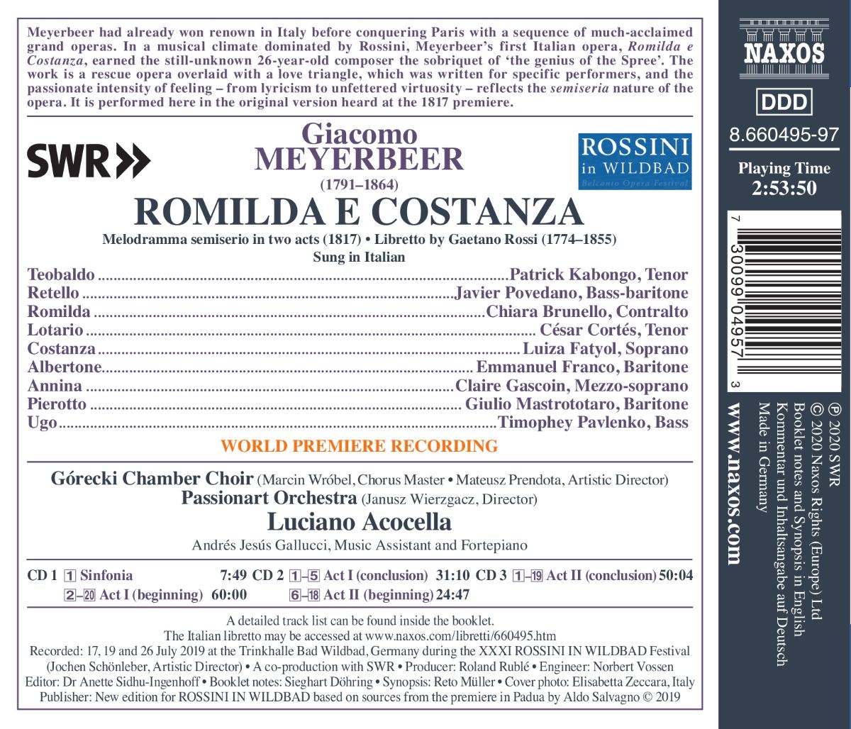 Giacomo Meyerbeer hatte bereits in Italien Berühmtheit erlangt, bevor er Paris mit einer Reihe von viel beachteten Grand Opéras eroberte. In einem musikalischen Umfeld, das von Rossini beherrscht wurde, brachte Meyerbeers erste italienische Oper „Romilda e Costanza“ dem noch unbekannten 26-Jährigen gebürtigen Berliner aus dem Stand den Beinamen „Das Genie von der Spree“ ein.
