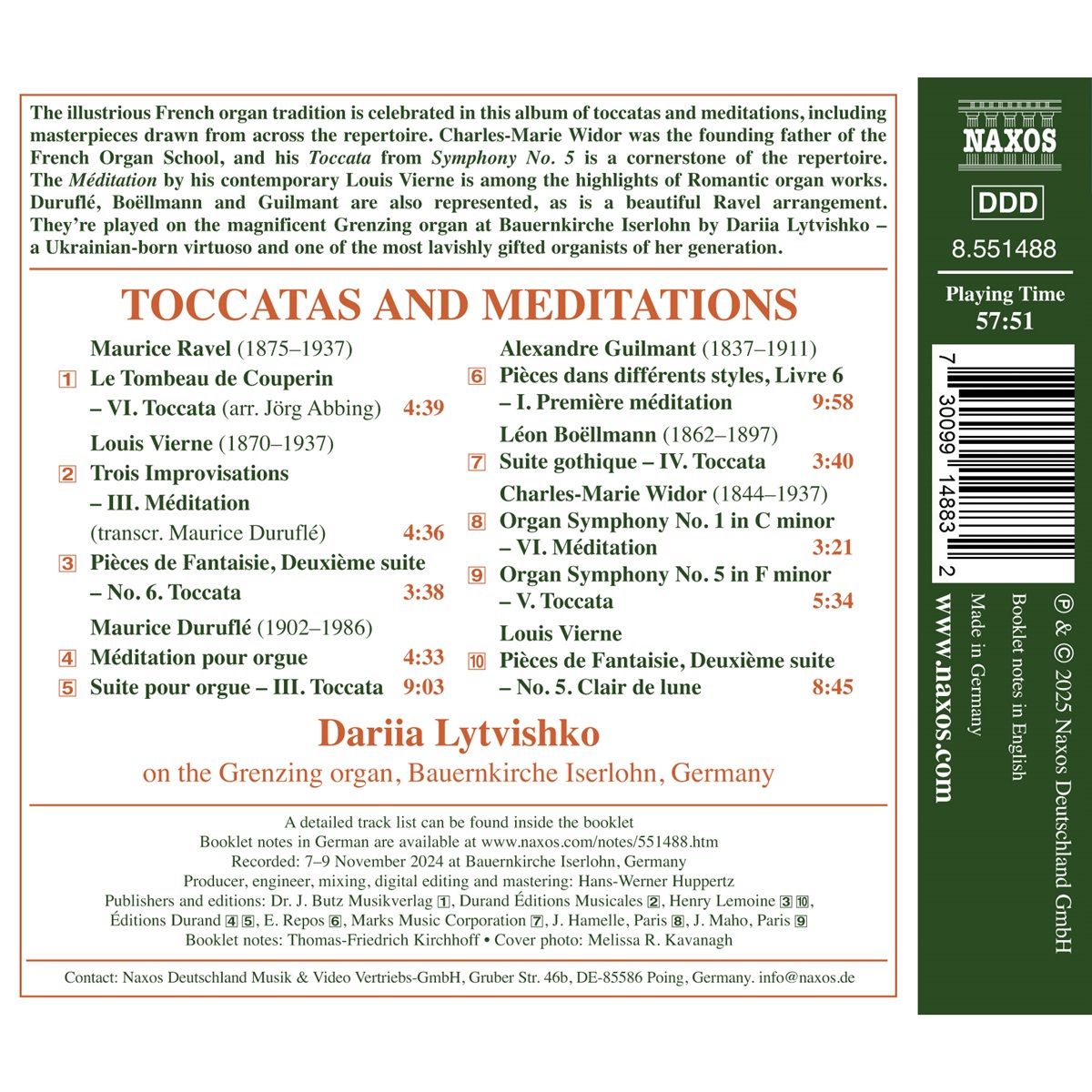 Dieses Album ist der berühmten französischen Orgeltradition gewidmet. Charles-Marie Widor war der Begründer der französischen Orgelschule, und seine „Toccata“ aus der „Sinfonie Nr. 5“ ist ein Eckpfeiler des Repertoires. Die „Méditation“ seines Zeitgenossen Louis Vierne gehört zu den Höhepunkten der romantischen Orgelwerke. Maurice Duruflé, Léon Boëllmann und Alexandre Guilmant sind ebenso vertreten wie eine wunderschöne Bearbeitung von Maurice Ravel. Gespielt werden sie auf der prächtigen Grenzing-Orgel in der Bauernkirche Iserlohn von Dariia Lytvishko – einer in der Ukraine geborenen Virtuosin und einer der begabtesten Organistinnen ihrer Generation, die hier ihr Debutalbum vorstellt. Sie wird für ihre dynamischen Darbietungen bei großen Orgelfestivals und in renommierten Konzertsälen in ganz Europa gefeiert. Zu ihren Konzertauftritten zählen unter anderem die Westminster Abbey und St. Paul's Cathedral in London, der Temple protestant de l'Oratoire du Louvre in Paris und das Pantheon in Rom. Sie tourte ausgiebig durch Frankreich, England, Italien, Belgien, die Schweiz, Finnland, Norwegen, Spanien sowie Nordamerika.