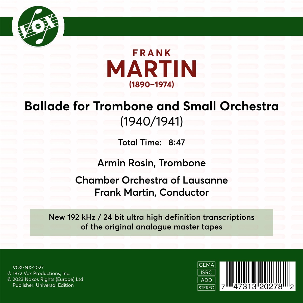 Rosin, Armin / Chamber Orchestra of Lausanne / Martin, Frank