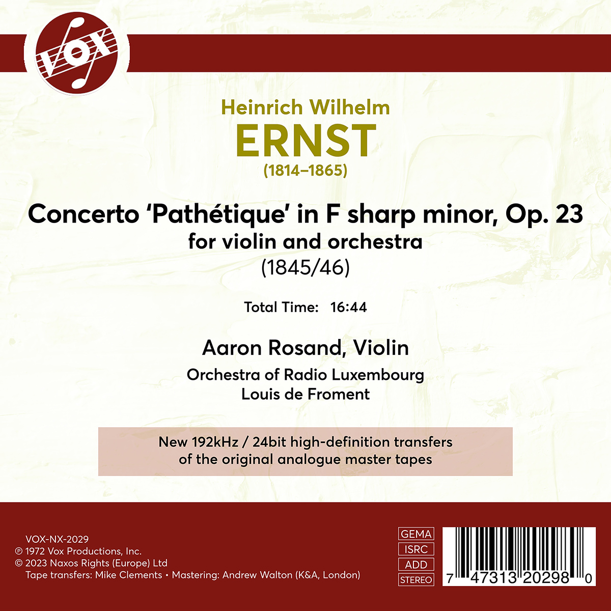 Rosand, Aaron / Froment, Louis de / Luxembourg Radio Orchestra