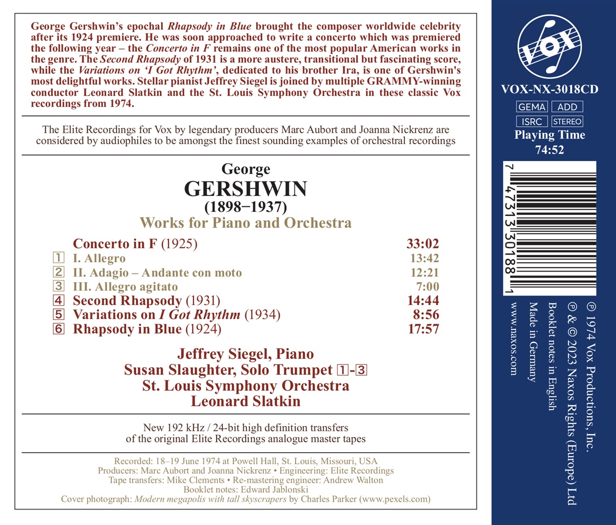Gershwin: Werke für Klavier und Orchester