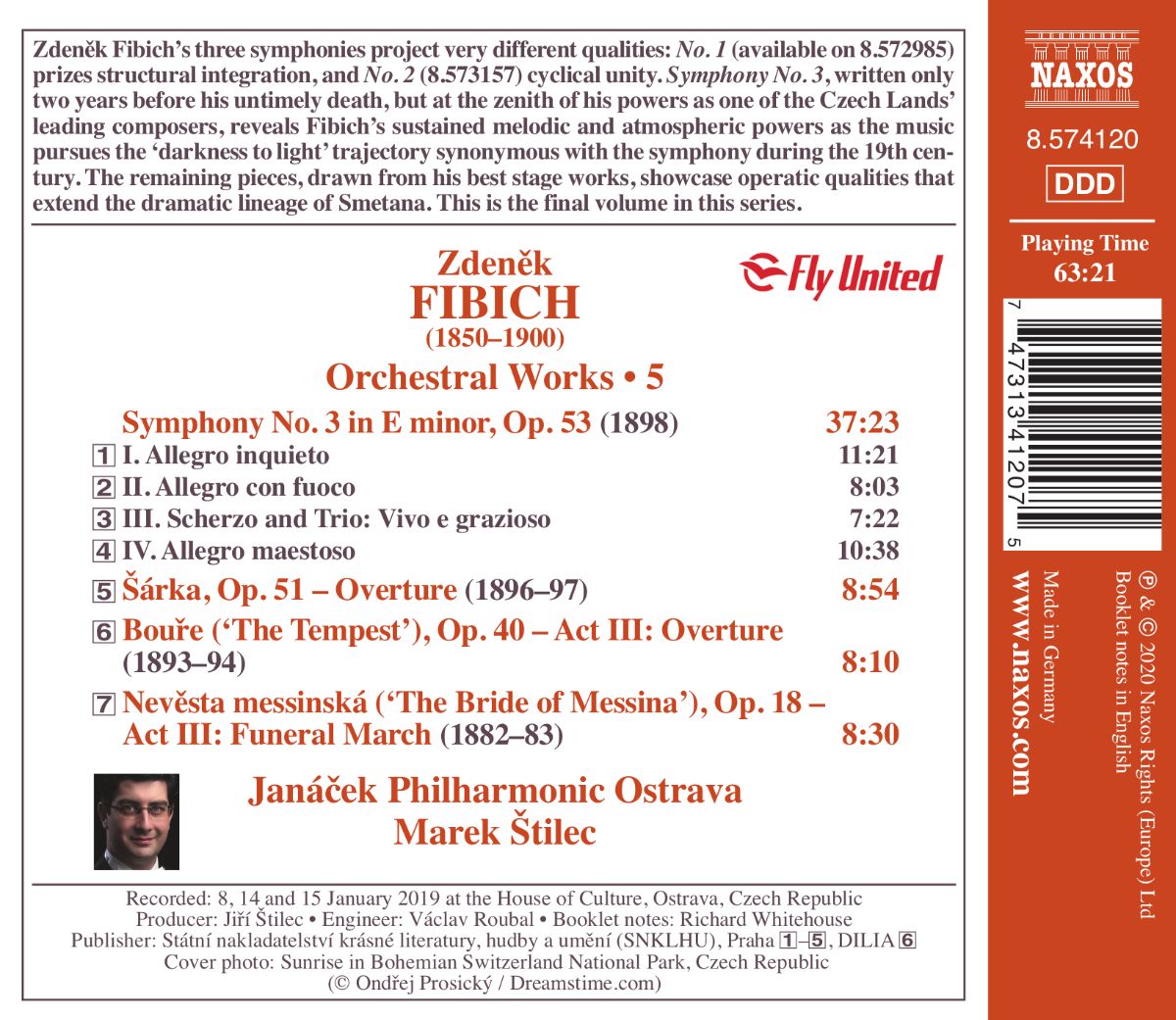 Zden?k Fibichs drei Sinfonien haben sehr unterschiedliche Qualitäten: Die erste betont strukturelle Integration, die zweite zyklische Einheit. Die Sinfonie Nr. 3 in e-Moll, die nur zwei Jahre vor seinem frühen Tod, aber auf dem Höhepunkt seiner Karriere als einer der führenden Komponisten Böhmens geschrieben wurde, präsentiert Fibichs melodische Qualitäten und seine Fähigkeit intensive Atmosphären zu erzeugen. Die Musik selbst folgt dem im 19. Jahrhundert beliebten Konzept „von der Dunkelheit ins Licht".