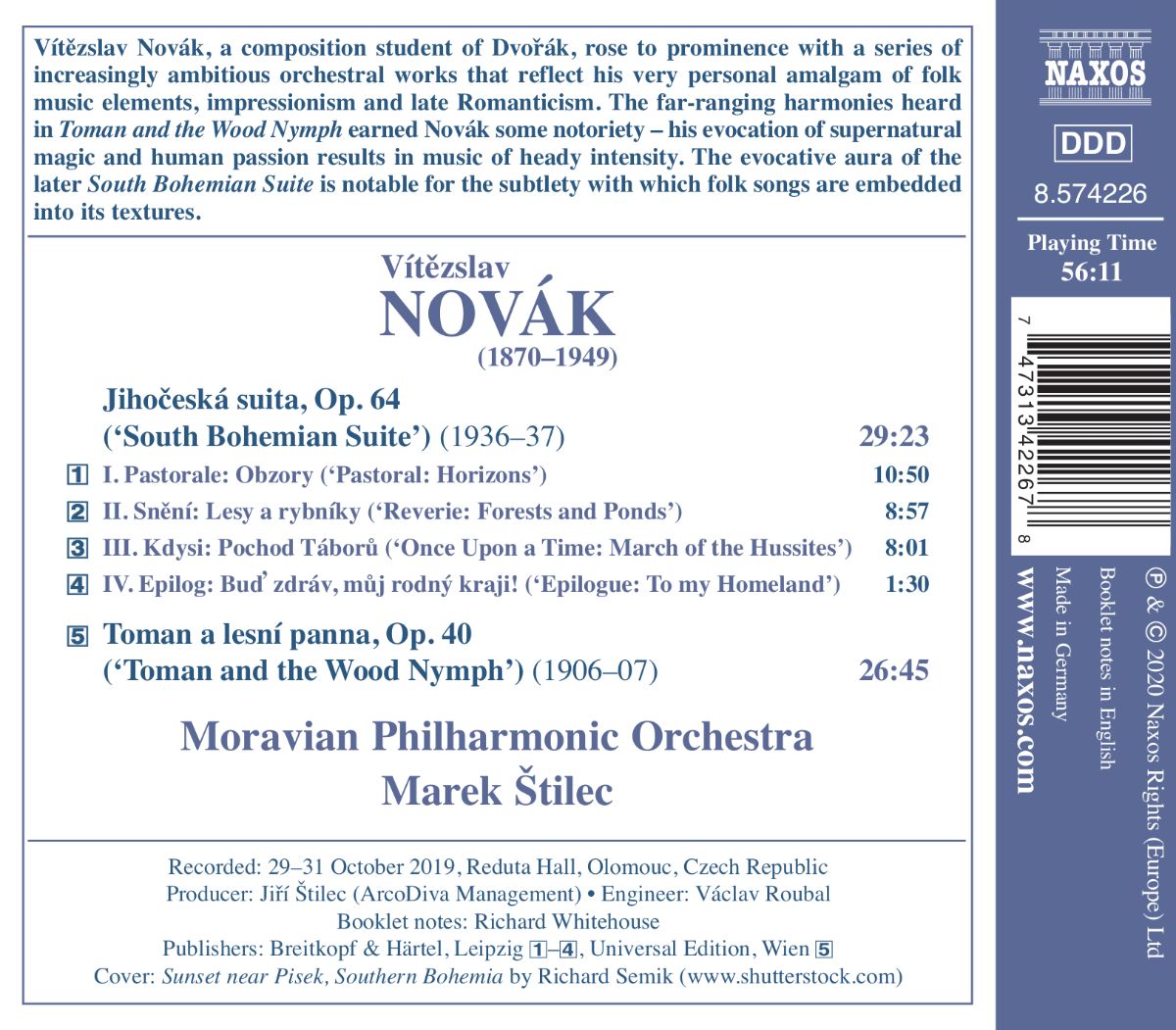 Die üppigen Harmonien, die in „Toman und die Waldfee“ zu hören sind, brachten Novák auch außerhalb seiner tschechischen Heimat eine gewisse Bekanntheit ein. Die Beschwörung übernatürlicher Magie und menschlicher Leidenschaft ist ein wiederkehrendes Thema in der böhmischen Mythologie (man denke an die „Rusalka“). In Nováks Musik führt dieser Konflikt zu einer Musik von berauschender Intensität. Die suggestive Aura der späteren „Südböhmischen Suite“ („Jiho?eská suita“) zeichnet sich durch vor allem durch die Subtilität aus, mit der die Volkslieder in ihre Texturen eingebettet sind.