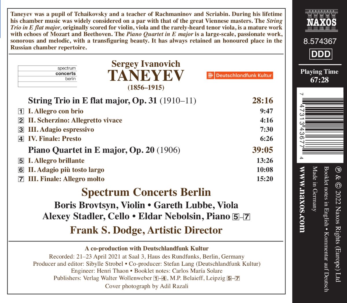 Tanejew: Streichtrio, op. 31 / Klavierquartet, op. 20