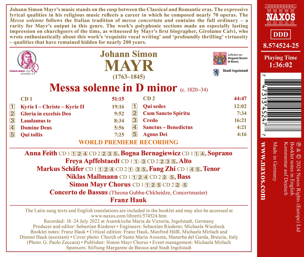 Hauk, Franz / Concerto de Bassus / Feith, Anna / Bernagiewicz, Bogna / Apffelstaedt, Freya / Schäfer, Markus / Zhi, Fang / Mallmann, Niklas / Simon Mayr Chorus