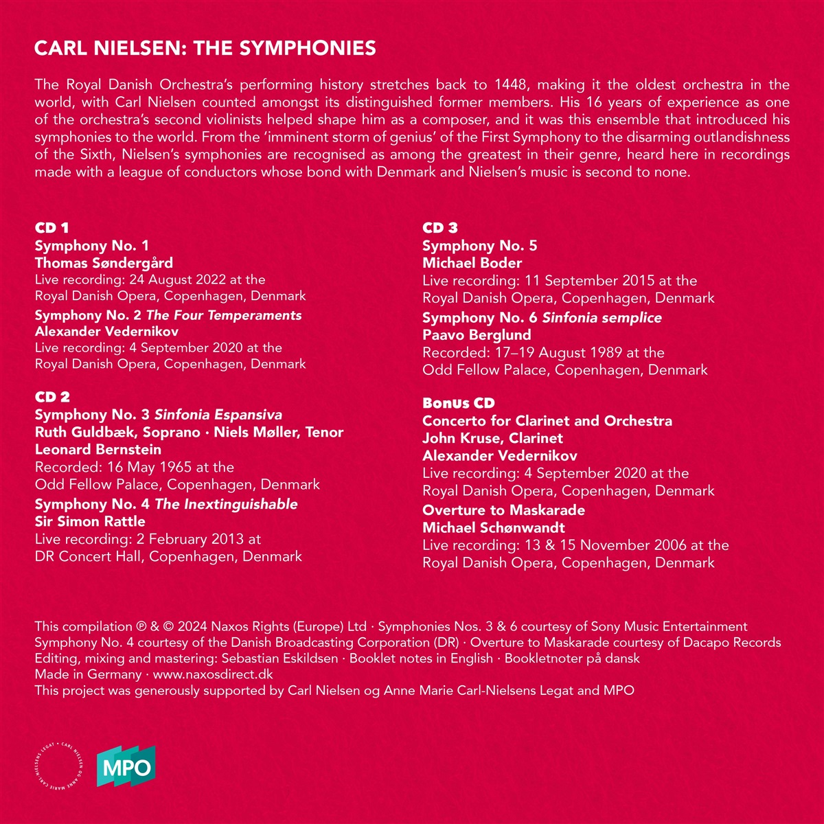 The Royal Danish Orchestra / Sondergard, Thomas / Vedernikov, Alexander / Guldbaek, Ruth / Möller, Niels / Bernstein, Leonard / Rattle, Simon / Boder, Michael / Berglund, Paavo / Kruse, John / Schönwandt, Michael