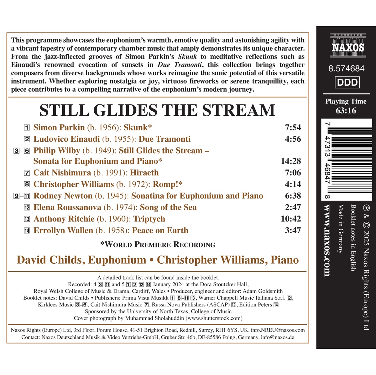 Dieses Programm präsentiert die Wärme, die emotionale Ausdruckskraft und die erstaunliche Flexibilität des Euphoniums in einem lebendigen Mosaik zeitgenössischer Kammermusik, das seinen einzigartigen Charakter voll zur Geltung bringt. Von den jazzigen Grooves von Simon Parkins „Skunk“ bis hin zu meditativen Reflexionen in Ludovico Einaudis berühmter Beschwörung von Sonnenuntergängen in „Due Tramonti“ vereint diese Sammlung Komponisten mit unterschiedlichem Hintergrund, deren Werke das klangliche Potenzial dieses vielseitigen Instruments neu interpretieren. Ob sie nun Nostalgie oder Freude, virtuoses Feuerwerk oder heitere Ruhe erkunden, jedes Stück trägt zu einer fesselnden Erzählung über die moderne Reise des Euphoniums bei. David Childs ist der beste Botschafter, den man sich für sein Instrument vorstellen kann, und dieses exzellente neue Album knüpft an seine Arbeit mit der Black Dyke Band in „Virtuoso“ an, das im April 2025 veröffentlicht wurde. Der Pianist Christopher Williams hat ein großes Interesse an der Aufführung und Aufnahme von Werken zu Unrecht vernachlässigter Komponisten, diese Leidenschaft führte zuletzt zu der Veröffentlichung von drei Alben mit Weltpremieren des Komponisten Semyon Barmotin.