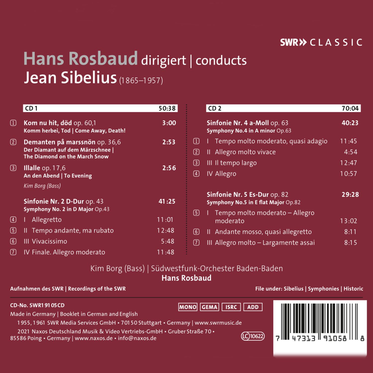 Hans Rosbauds Dirigate mit Musik von Sibelius dürften nicht im gleichen Maßen bekannt sein wie diejenigen mit den Werken Bruckners, Mahlers oder der radikalen Moderne der 1950er Jahre. In Rosbaud verbanden sich unbestechliche Gewissenhaftigkeit, Integrität und untrügliche Intuition mit einer enormen Erfahrung auch mit den komplexesten und neuartigsten Gestaltbildungen. Dank dieser künstlerischen Herangehensweise gehören die vorliegenden Studioaufnahmen von 1955 und 1961 zu den vortrefflichsten, die es mit Sibelius-Orchesterrepertoire gibt.