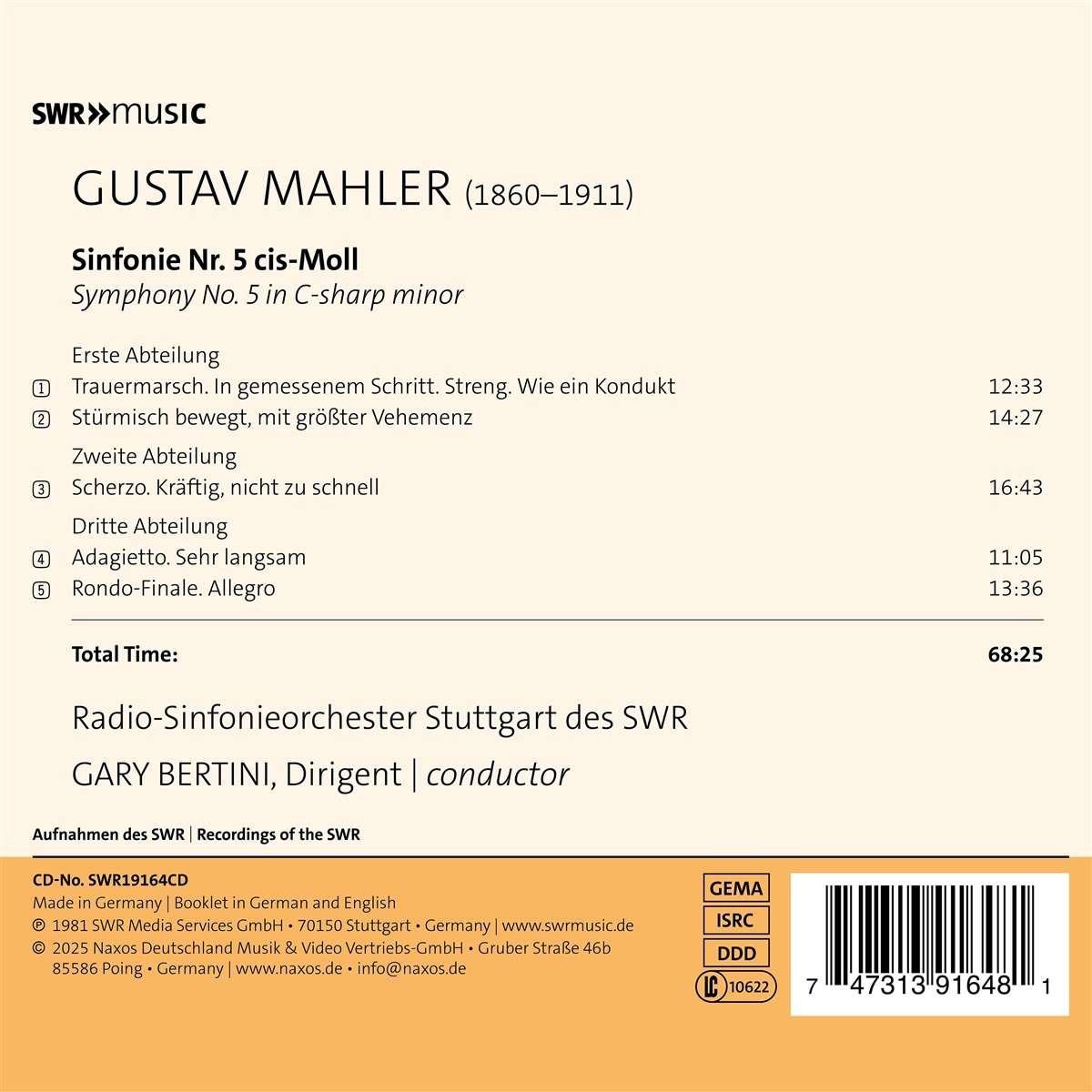 „Die Fünfte ist ein verfluchtes Werk. Niemand capiert sie“, so Gustav Mahler im März 1905 nach einer Aufführung seiner fünften Sinfonie in Hamburg. Knapp drei Jahre hatte er an seiner neuen Sinfonie gearbeitet, bis sie am 18. Oktober 1904 uraufgeführt wurde: in Köln, mit dem Gürzenich-Orchester und Gustav Mahler am Pult. Vielen seiner Zeitgenossen erschien das Werk zu kühn, zu radikal – vielleicht auch zu wenig erklärt, waren doch den so genannten „Wunderhorn“-Sinfonien Nr. 2 bis 4 jeweils programmatische Erläuterungen hinzugefügt worden. Nicht nur die Anzahl und die Stellung der Sätze wirkte neuartig, auch stilistisch betrat Mahler mit seiner Fünften Neuland. Mit einem Mal aber änderte sich nun seine Musiksprache und deswegen gilt das Werk heute als Beginn seiner neuen Schaffensphase, die in seiner neunten Sinfonie gipfelte. Sie stellt eine seiner beliebtesten Sinfonien dar. Gary Bertini gründete und leitete erst den Rinat-Chor – später Israel Chamber Choir – und dann das Israel Chamber Ensemble mit dem er zahlreiche Auftritte in Europa und den USA absolvierte. Im Laufe der Jahre war er Chefdirigent der Oper Frankfurt und des Kölner Rundfunk-Sinfonieorchesters, künstlerischer Leiter der New Israel Opera und Musikdirektor der Oper in Rom und des Tokyo Metropolitan Symphony Orchestra.
