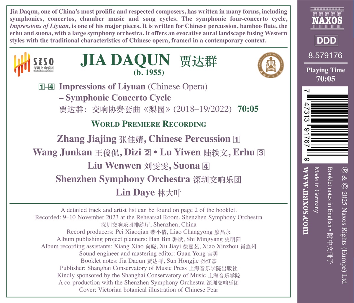 Jia Daqun feiert 2025 seinen 70. Geburtstag. Dieses Veröffentlichung enthält die Weltersteinspielung seines sinfonischen Konzertzyklus.