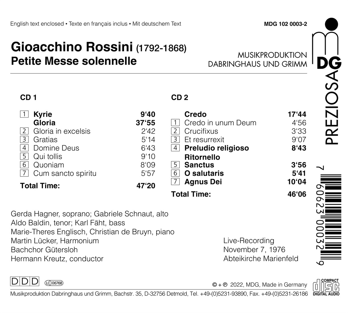 Hagner, Gerda / Schnaut, Gabriele / Baldin, Aldo / Fäht, Karl / Bachchor Gütersloh / Kreuz, Hermann