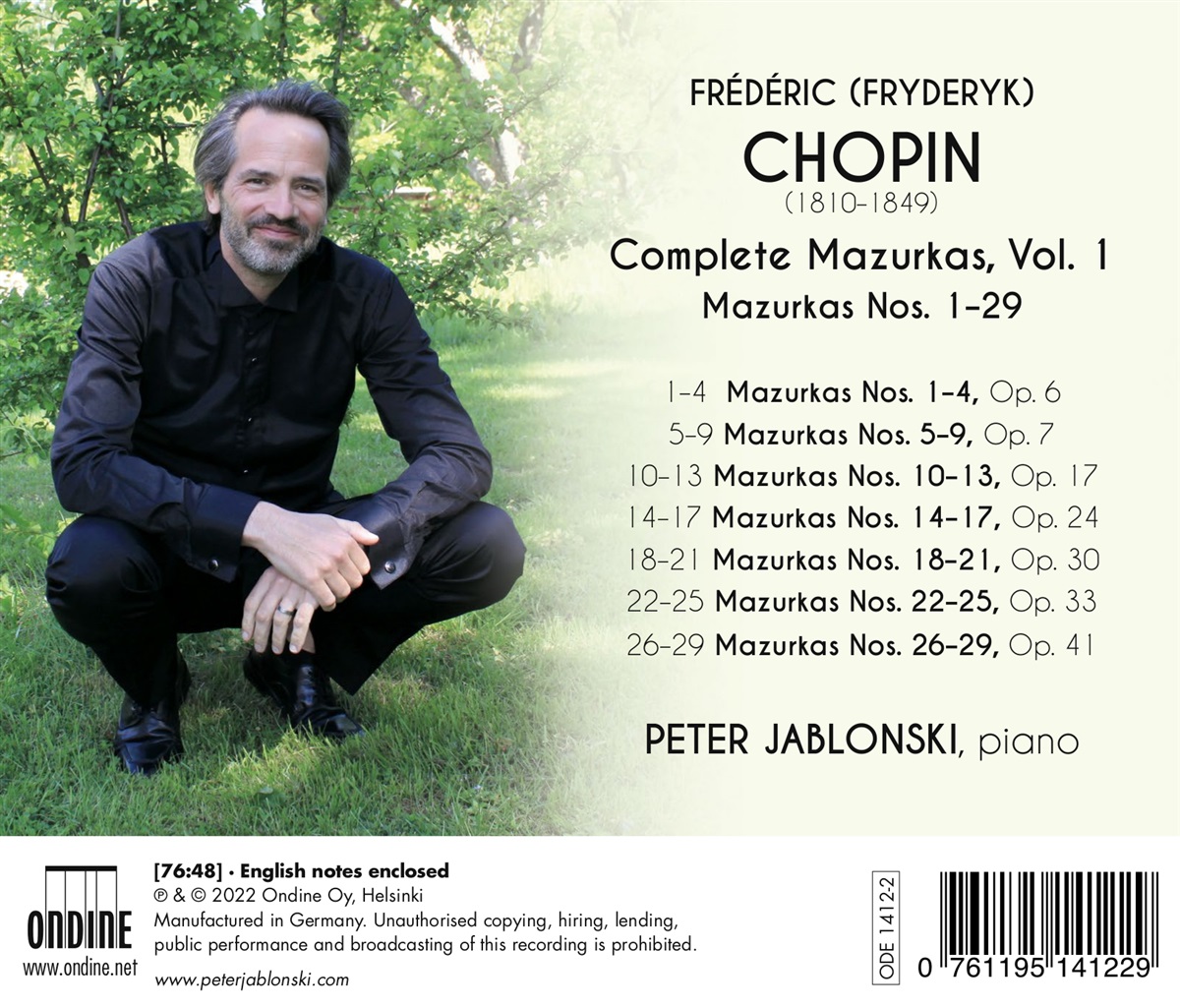 Der international gefeierte schwedische Pianist Peter Jablonski ist bekannt als leidenschaftlicher Verfechter der polnischen Musik. In diesem Album kehrt er zu seinen favorisierten Werken zurück – zu Chopins Mazurken. Für Chopin waren die Mazurken eine zutiefst persönliche, intime Aussage über seine Gefühle als polnischer Komponist, der als Emigrant in Paris lebte. Von einigen seiner allerersten Kompositionen bis zu seinen letzten Kompositionen ist dies die einzige Form, die Chopin während seines gesamten Lebens regelmäßig komponierte.