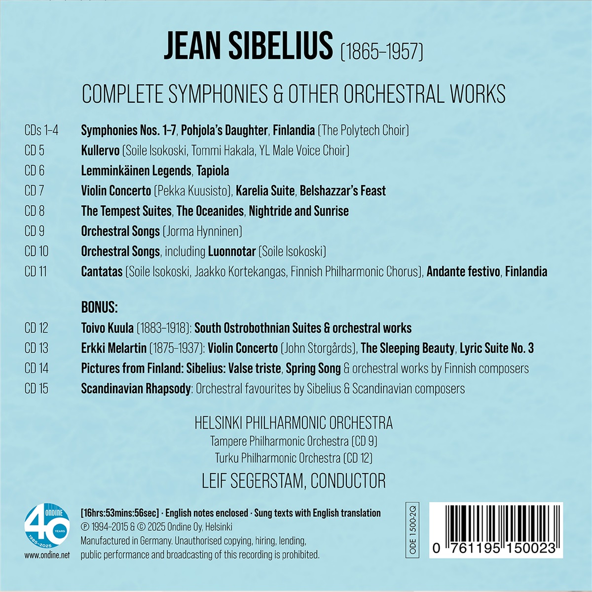 Das Orchester spielte schon lange Sibelius – es arbeitete schon mit dem Komponisten selbst zusammen. Dazu kam Segerstams Erfahrung, sein feines Gehör und seine kreative Energie – eine ideale Kombination. Neben Sibelius’ vollständigen Sinfonien und den wichtigsten Orchesterwerken enthält dieses Album auch Musik von anderen finnischen Komponisten, die zu Lebzeiten Sibelius’ tätig waren, sowie Klassiker der skandinavischen Orchestermusik, meisterhaft interpretiert von Leif Segerstam. Einige davon wurden mit dem Tampere Philharmonic Orchestra und dem Turku Philharmonic Orchestra aufgenommen.