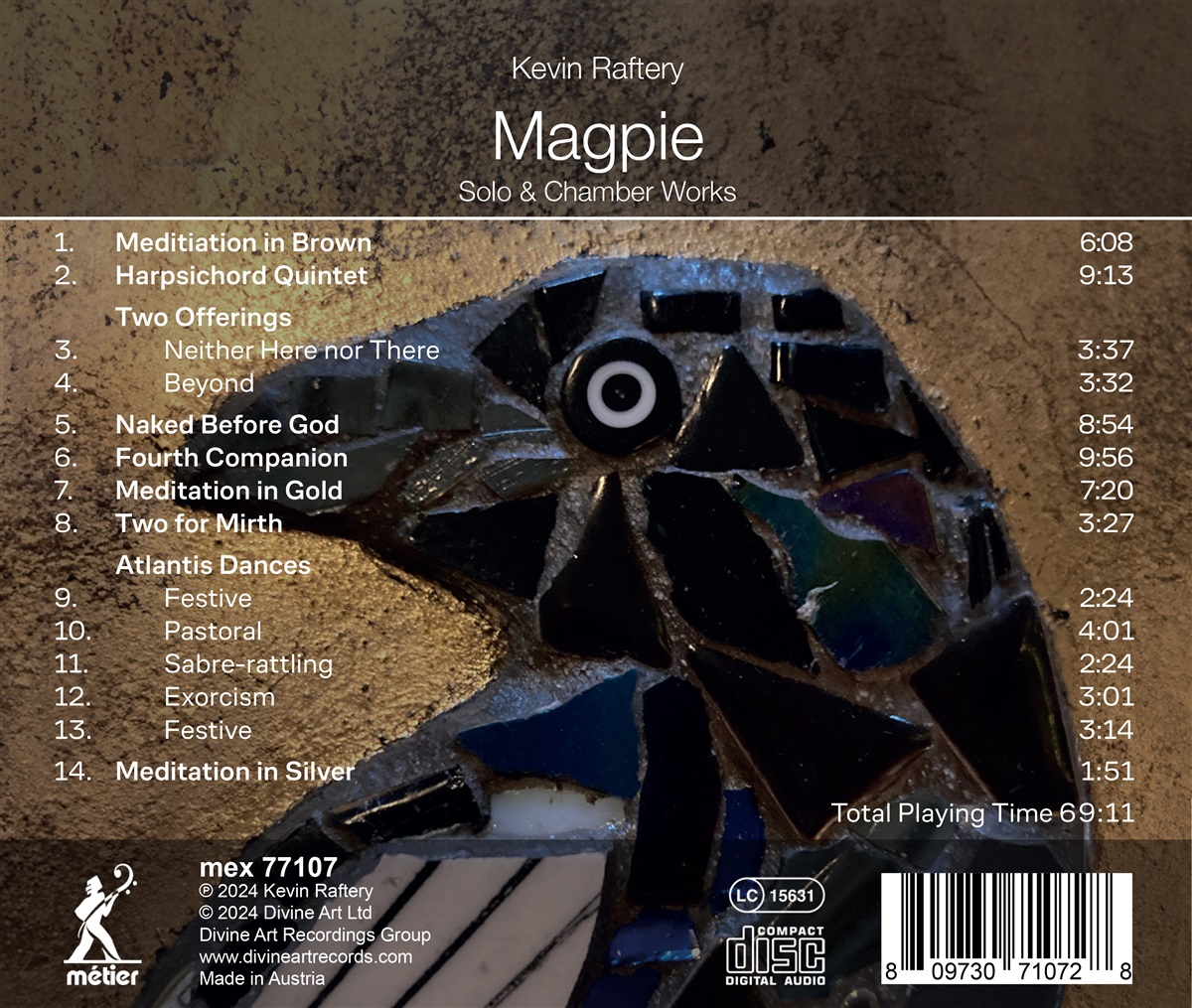 „Magpie“ ist eine außergewöhnliche Sammlung von Kompositionen, die das Spektrum menschlicher Erfahrungen abdeckt, von Trauer bis Freude, von Beerdigungen bis Geburten. Diese Werke, die in schwierigen Zeiten komponiert wurden, spiegeln eine Reise durch die Dunkelheit zum Licht wider. Die Stücke variieren von meditativen Reflexionen bis hin zu spielerischen und freudigen Ausdrucksformen und fangen die emotionalen Höhen und Tiefen des Lebens ein. Der Titel des Albums „Magpie“ - "Elster" steht symbolisch für diese Gegensätze – genau wie der Vogel selbst, ein Geschöpf, das sowohl bewundert als auch geschmäht wird, intelligent und opportunistisch.