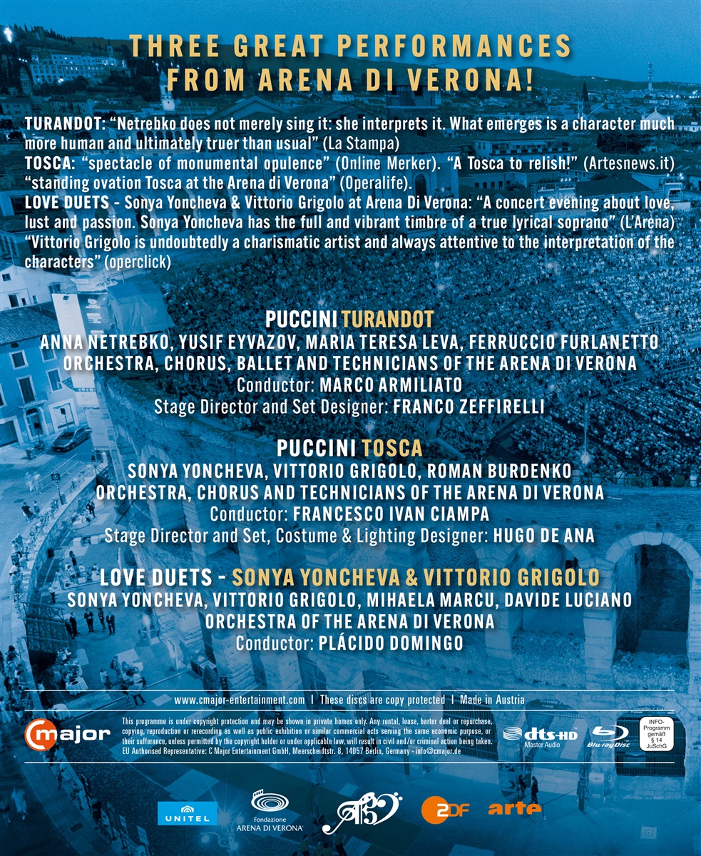Armiliato, Marco / Burdenko, Roman / Ciampa, Francesco Ivan / Coro dell'Arena di Verona / Domingo, Plácido / Eyvazov, Yusif / Furlanetto, Ferruccio / Grigòlo, Vittorio / Netrebko, Anna / Orchestra dell'Arena di Verona / Yoncheva, Sonya