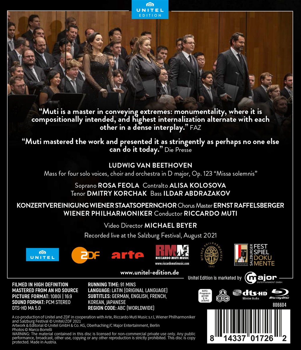 Seit dem Tod Karajans im Jahr 1989 liegen die Konzerte der Wiener Philharmoniker bei den Salzburger Festspielen rund um Mariä Himmelfahrt (15. August) fest in den Händen von Riccardo Muti. Anlässlich seines 80. Geburtstages wagte sich Maestro Muti, ein Spezialist für Opern und großformatige Chorwerke, an die Interpretation von Beethovens gewaltiger „Missa solemnis“. Ein Werk, das er erstaunlicherweise noch nie zuvor dirigiert hatte.
