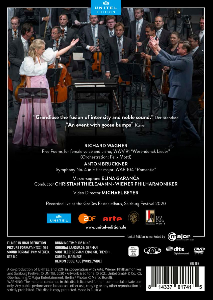 Christian Thielemann ist ein leidenschaftlicher Verfechter der spezifisch deutschen Musik; sein Programm bei den Salzburger Festspiele 2020 mit den Wiener Philharmonikern stand ganz im Zeichen seines bevorzugten Repertoires. Bei seiner lang erwarteten Rückkehr zu den Sommerfestspielen eröffnet er mit Wagners Wesendonck-Liedern (in der Orchestrierung von Felix Mottl) mit der lettischen Mezzosopranistin El?na Garan?a als Solistin. Das Herzstück seiner umjubelten Konzerte war Bruckners 4. Sinfonie.