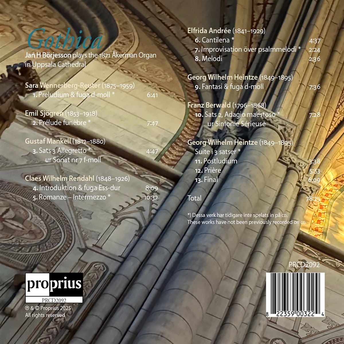 Für dieses Album, das auf der Åkerman-Orgel der Kathedrale von Uppsala eingespielt wurde, wählte Börjesson Musik aus, die im letzten Drittel des 19. Jahrhunderts komponiert wurde. Es enthält Werke von Sara Wennerberger-Reuter, Emil Sjögren, Gustaf Mankell, Claes Wilhelm Rendahl, Elfrida Andrée, Georg Wilhelm Heintze und Franz Berwald.