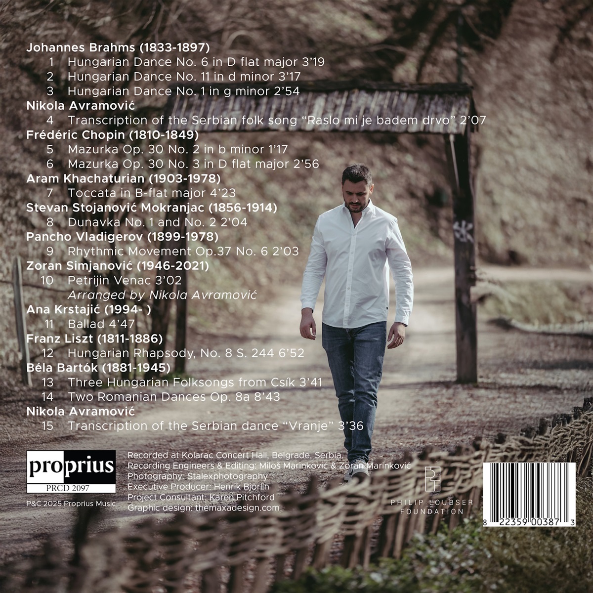 Avramović kombiniert eigene Transkriptionen serbischer Volkslieder mit Werken von Johannes Brahms, Frédéric Chopin, Stevan Stojanović, Aram Khachaturian, Pancho Vladigerov, Franz Liszt, Béla Bartók und der zeitgenössischen Komponistin Ana Krstajić.