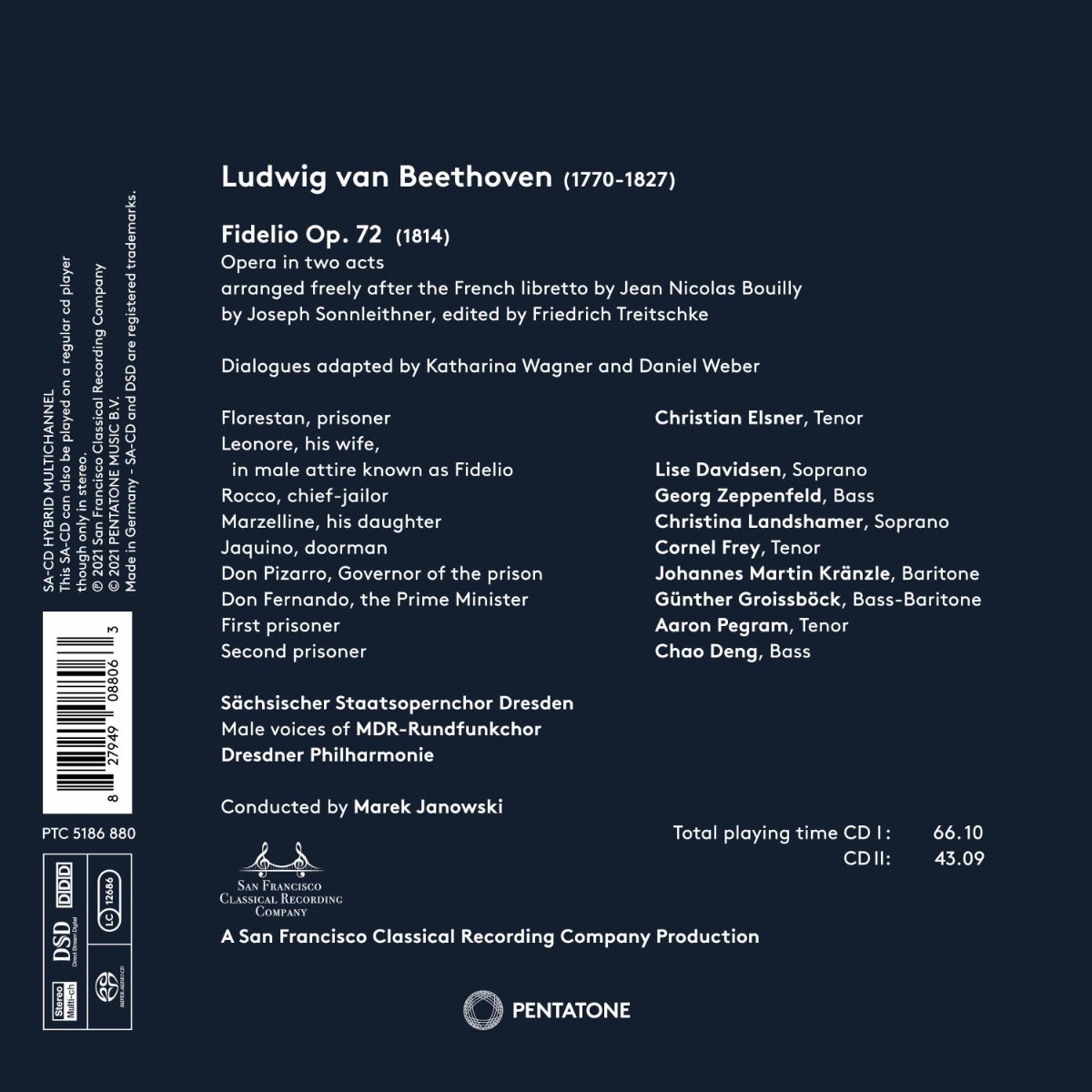 Nach ihrer umjubelten Einspielung von Webers „Freischütz“ präsentiert die Dresdner Philharmonie unter ihrem Chefdirigent Marek Janowski mit Beethovens „Fidelio“ einen weiteren deutschen Opernklassiker. Dabei arbeiten sie mit einer hochkarätigen, im deutschen Opernfach erprobten Besetzung zusammen: Lise Davidsen (Fidelio/Leonore), Christian Elsner (Florestan), Georg Zeppenfeld (Rocco), Christina Landshamer (Marzelline), Cornel Frey (Jaquino), Johannes Martin Kränzle (Don Pizzarro) und Günther Groissböck (Don Fernando). Eigentlich sollte dies ein Live-Konzertmitschnitt werden, aber die Pandemie verhinderte die Auftritte. Glücklicherweise erwies es sich als möglich, Beethovens Meisterwerk in zwei Studiositzungen aufzunehmen.