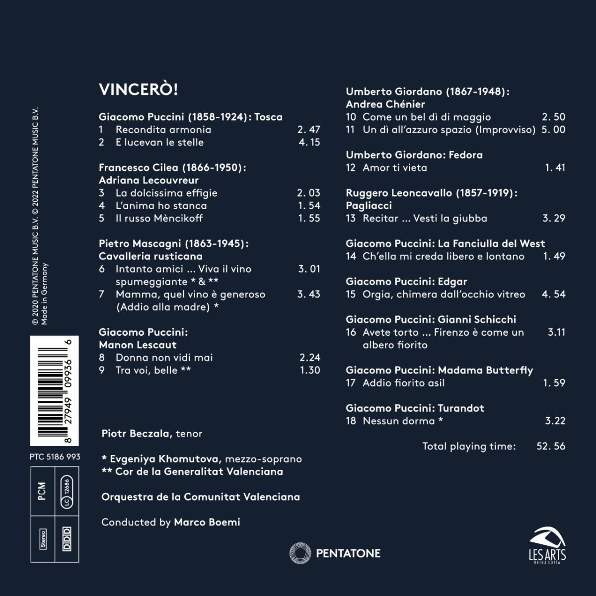 Auf „Vincero“ widmet sich der polnische Startenor Piotr Beczala den ganz großen Hits der Opernliteratur für sein Stimmfach: Werke von Puccini, Cilea, Mascagni, Giordano und Leoncavallo bieten dem Sänger die Möglichkeit, seine stimmlichen Möglichkeiten aufs allerbeste darzustellen. Die zeigt er natürlich besonders im grandiosen Finale der Aufnahme, Puccinis „Nessun Dorma“ aus Turandot. Musikalisch unterstützt wird Beczala von Chor und Orchester aus Valencia unter der Leitung von Marco Boemi. Für das Album wurde Beczala 2021 (zurecht!) beim OPUS Klassik als „Sänger des Jahres“ ausgezeichnet.