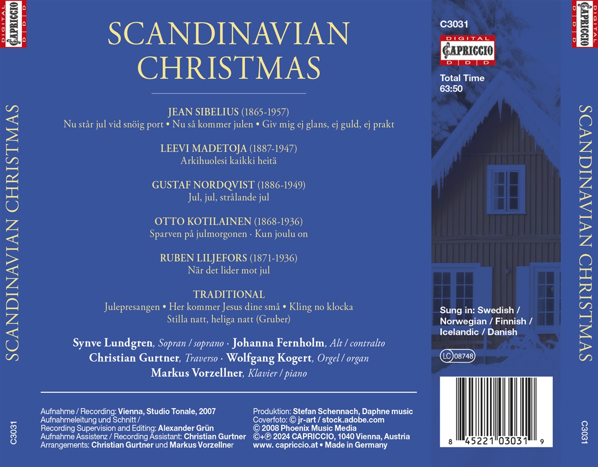 Dieses festliche Album präsentiert eine Vielzahl traditioneller Weihnachtslieder aus Schweden, Finnland, Norwegen und Island. Diese Aufnahmen sind jedem wärmstens zu empfehlen, der daran interessiert ist, traditionelle Weihnachtsmelodien aus Skandinavien zu hören. Die Auswahl umfasst eine Mischung aus unbekannten Liedern und ein oder zwei bekannten Weihnachtsliedern, die in verschiedene Sprachen übersetzt wurden. Die unverkennbaren, typisch skandinavischen melancholischen Klänge sind fast meditativ und sorgen für ein entspanntes und besinnliches Hörerlebnis.