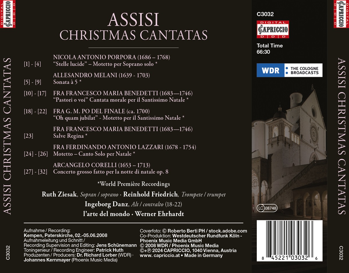 Dieses Album präsentiert die einzigartige Sammlung weihnachtlicher Musik aus der Bibliothek des Sacro Convento in Assisi, die Forschern bisher nicht zugänglich war. Die Werke aus einem Zeitraum von 700 Jahren bieten einen Einblick in die Musikkultur Assisis im 18. Jahrhundert, die stark von der neapolitanischen Tradition beeinflusst war. Das Album enthält Kammermusik, die sich durch ihre Schlichtheit und Besinnlichkeit auszeichnet, und präsentiert vergessene Weihnachtskantaten, die vom Dirigenten Werner Ehrhardt und L'Arte Del Mondo zum Leben erweckt wurden. Die Sopranistin Ruth Ziesak und der Trompeter Reinhold Friedrich, die für ihre gefeierten Auftritte bekannt sind, tragen mit ihrem Talent zu dieser fesselnden Wiederentdeckung bei.