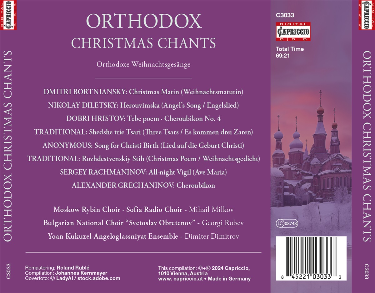 Dieses Album enthält eine Sammlung traditioneller russisch-orthodoxer Weihnachtshymnen und -lieder, die a-cappella in dem reichen, klangvollen Stil vorgetragen werden, der für russische geistliche Chormusik charakteristisch ist. Von engelsgleichen Lobgesängen bis hin zu freudigen Verkündigungen entführt diese Aufnahme den Hörer in ein Reich der spirituellen Schönheit und archaischer Ehrfurcht.