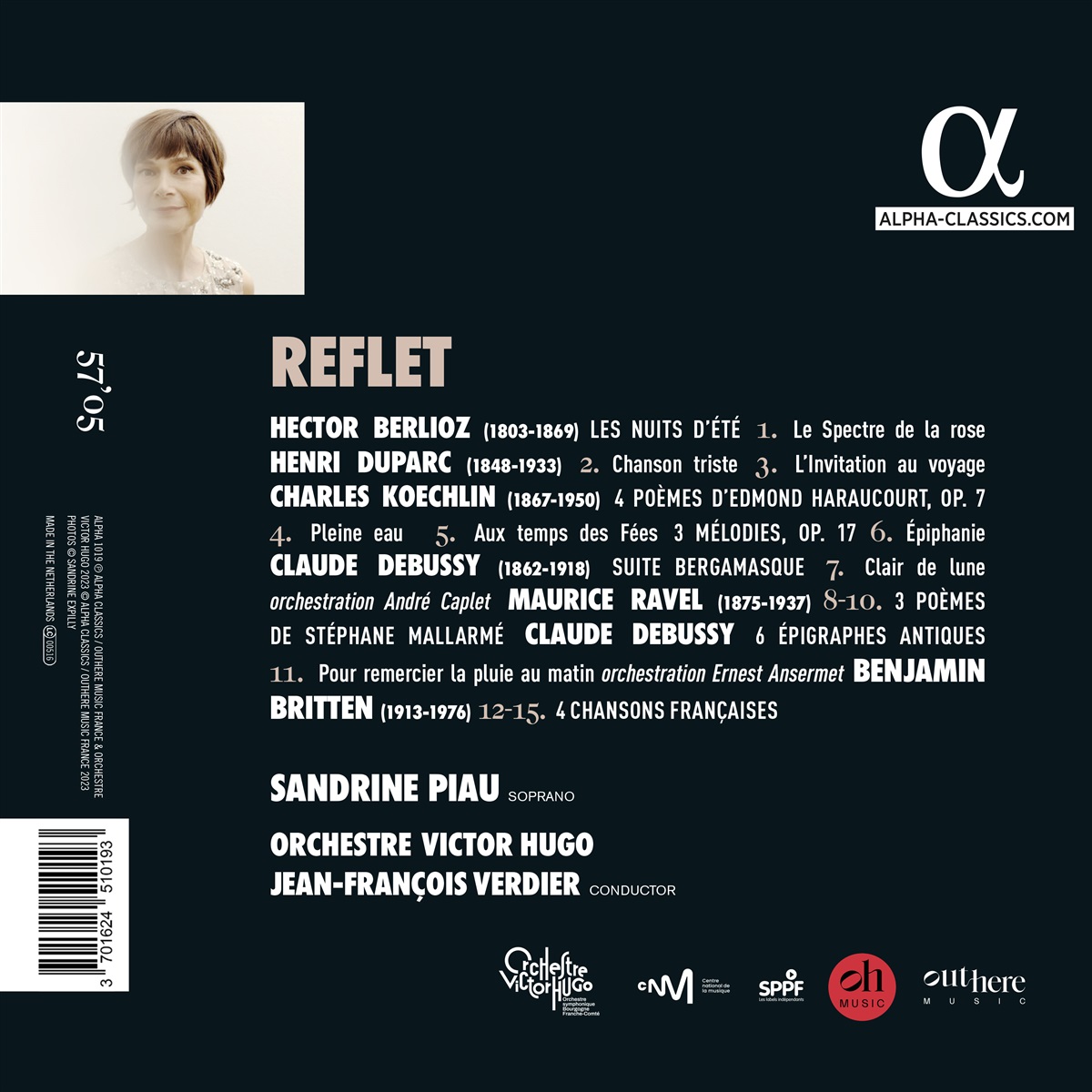 Das Album „Reflet“ beschwört die Nuancen und Transparenzen französischer Melodien herauf. In der Reflexion gibt es die Idee eines Echos, des Schattens eines beunruhigenden Doppelgängers, eines pluralen, gebrochenen Glanzes... „Ein Zusammenprall von trügerischen Trugbildern, ein Kaleidoskop von Sinnen und Lichtblitzen, es verwebt in seltsamen Parallelen die Partitur unseres Lebens, geschmückt mit Gold und Illusionen", schreibt Sandrine Piau. Berlioz, Gauthier, Britten, Hugo, Verlaine, Baudelaire, Duparc, Koechlin, Ravel, Mallarmé... die Begegnungen zwischen diesen Komponisten und Dichtern „erzeugen in mir ein Feuerwerk von Farben und Schimmern", schließt die französische Sopranistin, die damit ihre 14. Aufnahme für Alpha Classics macht.