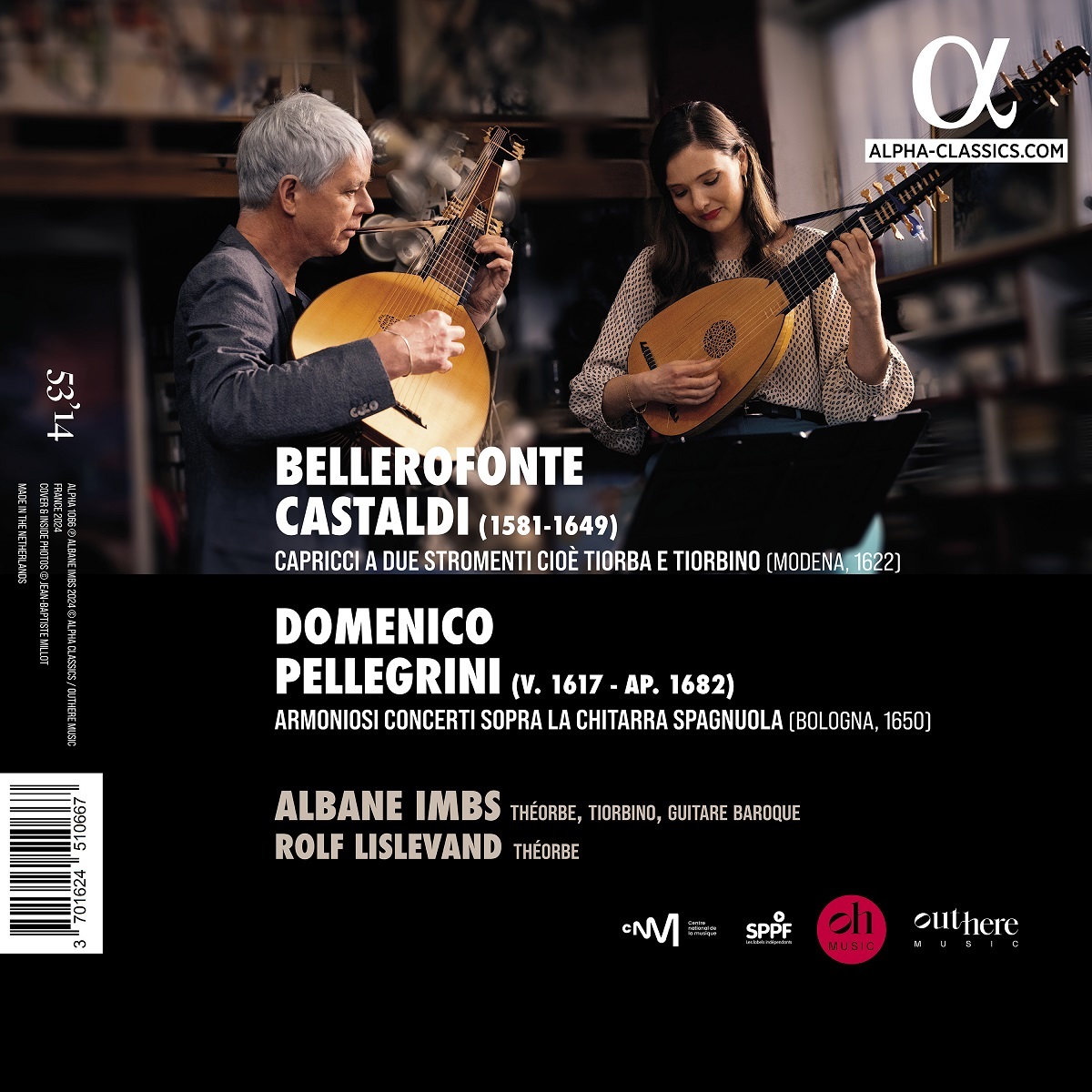Die Werke des Theorbisten Bellerofonte Castaldi und des Gitarristen Domenico Pellegrini sind wenig bekannt, über aber große Faszination aus, denn sie zeugen nicht nur von einem fruchtbaren musikalischen Einfallsreichtum, sondern beleuchten auch viele Fragen der damaligen Aufführungspraxis. Obwohl Castaldi der erste war, der den innovativen Stil seines Freundes Monteverdi lobte, sind seine Werke von einem starken Renaissance-Geist geprägt. Castaldi und Pellegrini wählten nicht nur die klassischsten Formen (Tänze, Courantes, Galliards), sondern auch die archaischsten (Branles, Batailles, Canzoni). Die Lautenistin, Theorbistin und Barockgitarristin Albane Imbs musiziert auf ihrem Debüt-Album als Solistin und gemeinsam mit ihrem Lehrer Rolf Lislevand, dem großen norwegischen Lautenisten und Theorbenspieler. Imbs und Lislevand spielen Castaldis Capricci a due stromenti, die für Theorbe und Tiorbino geschrieben wurden, wobei letzteres Instrument eine von Castaldi selbst konzipierte und gespielte Miniatur-Theorbe ist.