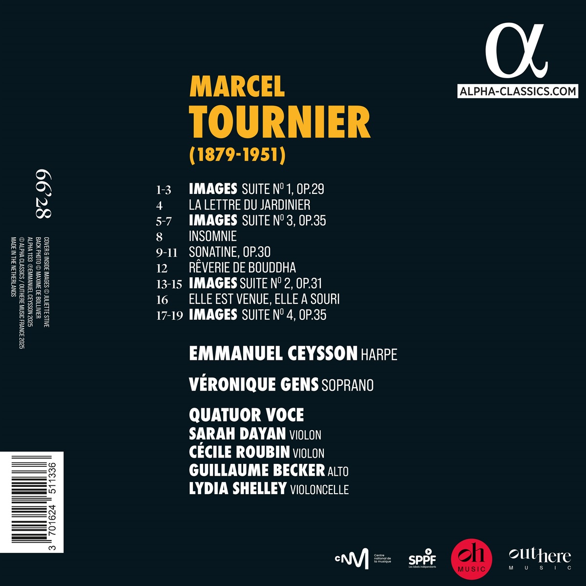 Mit diesem Album würdigt Emmanuel Ceysson einen der größten Harfenkomponisten in der Geschichte des Instruments: Marcel Tournier (1879-1951). Die meisten Werke Tourniers sind für Solo-Harfe oder Gesang und Harfe geschrieben, doch fügte er einigen Stücken später andere Instrumente hinzu und verwandelte sie so in Kammermusikwerke. Bei den hier eingespielten Werken handelt es sich um Spätwerke Tourniers, die den Einfluss von Debussy, Satie und Ravel erkennen lassen. Emmanuel Ceysson, das Quatuor Voce und Véronique Gens lenken unsere Aufmerksamkeit auf diesen bedeutenden Komponisten und auf mehrere bisher unveröffentlichte Versionen einiger seiner Werke, deren Manuskripte erst vor kurzem wiederentdeckt wurden.