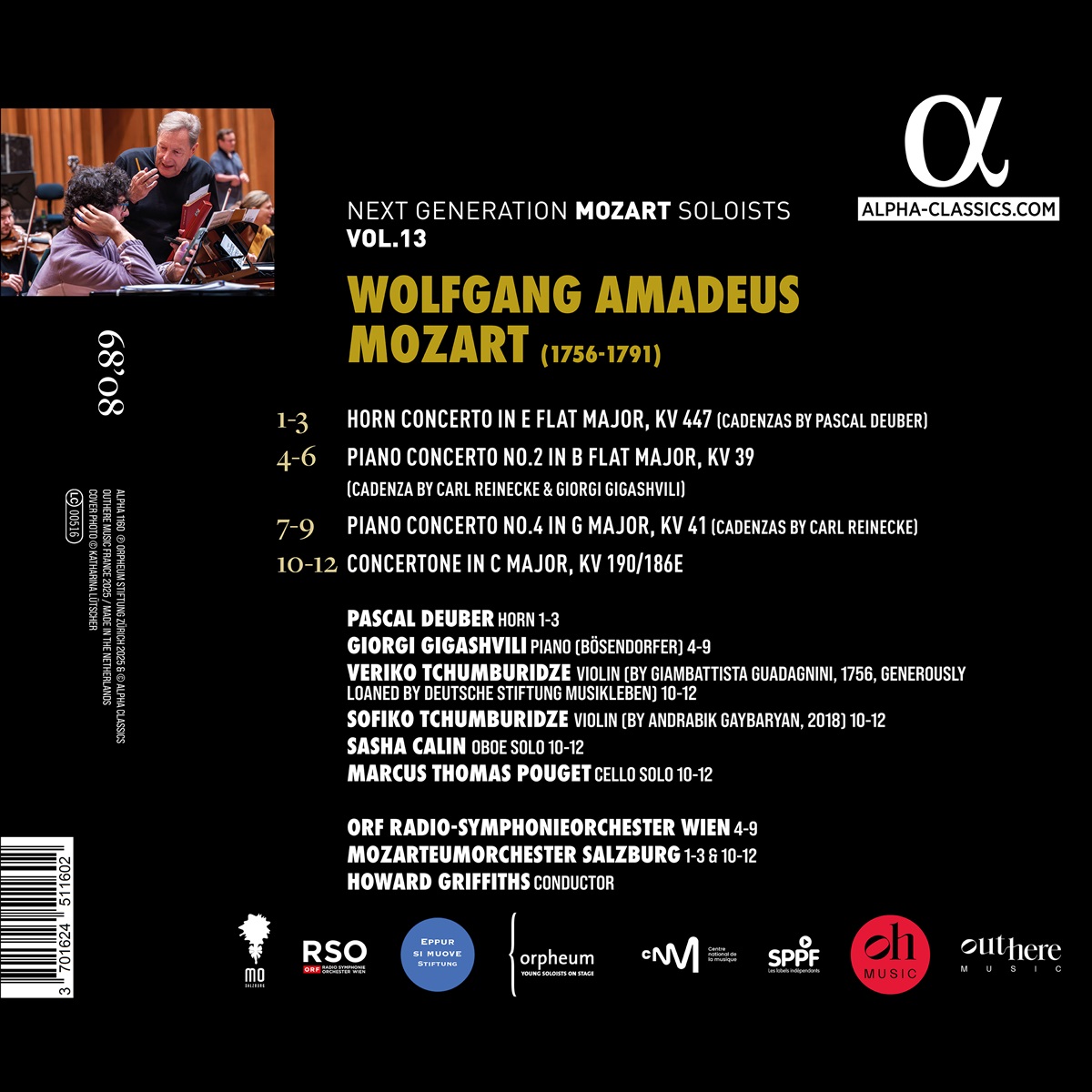 Mozart: Concertone KV 190, Hornkonzert Nr. 3 KV 447, Klavierkonzerte Nr. 2 KV 39 und Nr. 4 KV 41