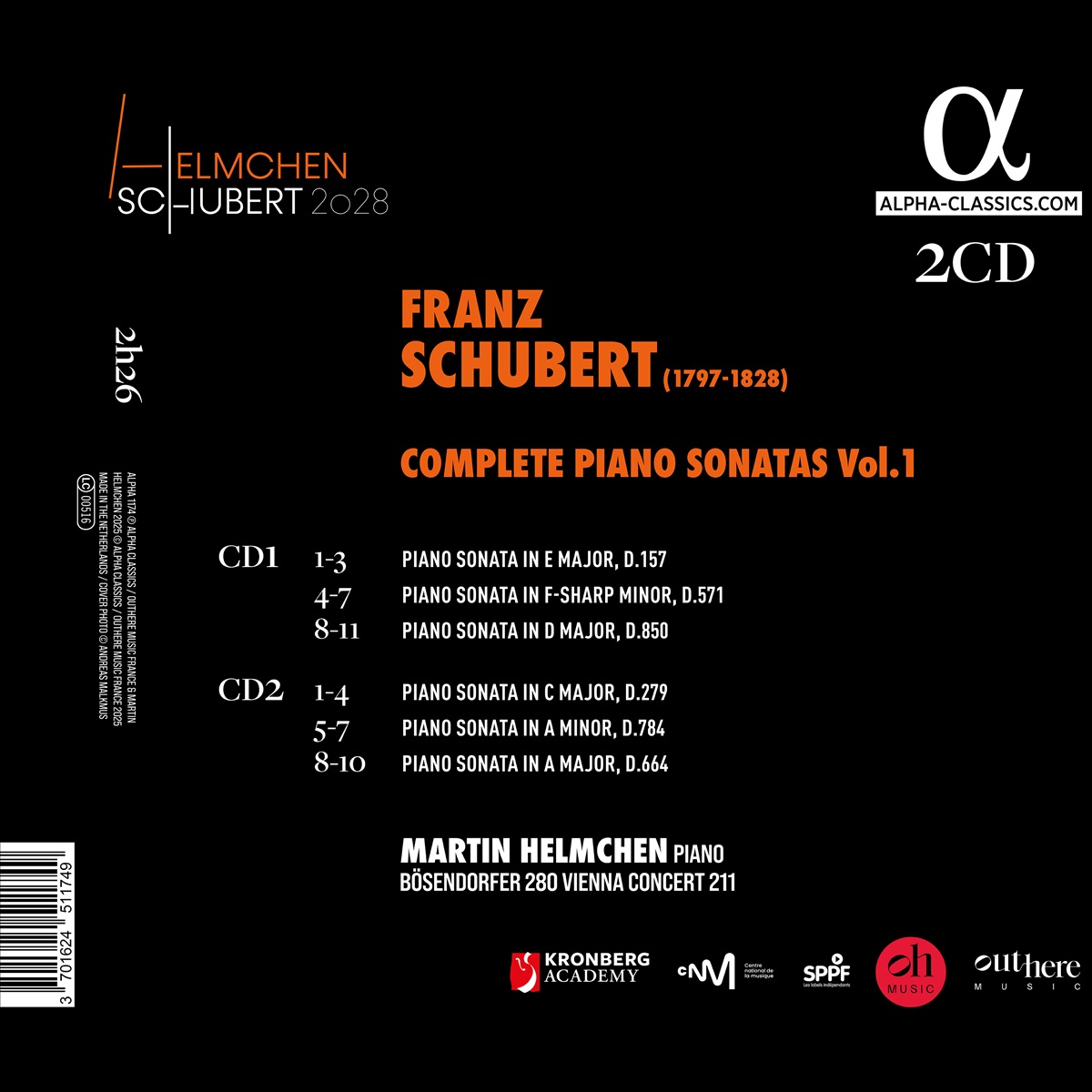 Mit der Gesamteinspielung von Schuberts Klaviersonaten widmet sich Martin Helmchen nun einem neuen Soloprojekt, das aus vier Doppelalben bestehen wird, die bis zum Jahr 2028, dem zweihundertsten Todestag des Komponisten, erscheinen werden. Um sich auf dieses Abenteuer einzulassen, hat Martin Helmchen bis zu seinem 40. Lebensjahr gewartet, denn seiner Meinung nach braucht ein Künstler Reife, um die Herausforderungen zu spüren, die die radikalen Kontraste in Schuberts Sonaten darstellen: „ständige, doch nie unnötig komplexe Virtuosität, die der nüchternen Innerlichkeit gegenübersteht, die überschwängliche Freude der Ländler und Anfälle von dramatischem Wahnsinn." Die Aufnahme eines Gesamtwerks bedeutete auch, die Partituren sorgfältig zu studieren und sich mit der Frage zu befassen, welche Sätze der Komponist unvollendet ließ, ob man an dem Punkt aufhören sollte, an dem Schubert mit dem Komponieren aufhörte, weil ihm entweder die Zeit davonlief oder er nicht genug Geld hatte, um Notenpapier zu kaufen? Helmchen hat sich entschlossen, diese Sätze zu vervollständigen, inspiriert durch die Aufnahmen und vor allem die Analysen des bedeutenden Pianisten Paul Badura-Skoda. Dieser erste Band enthält Sonaten, die zwischen 1815 (Schubert war 18) und 1825 komponiert wurden. Der gesamte Zyklus wurde auf einem Bösendorfer-Flügel in der Kronberg Academy aufgenommen.