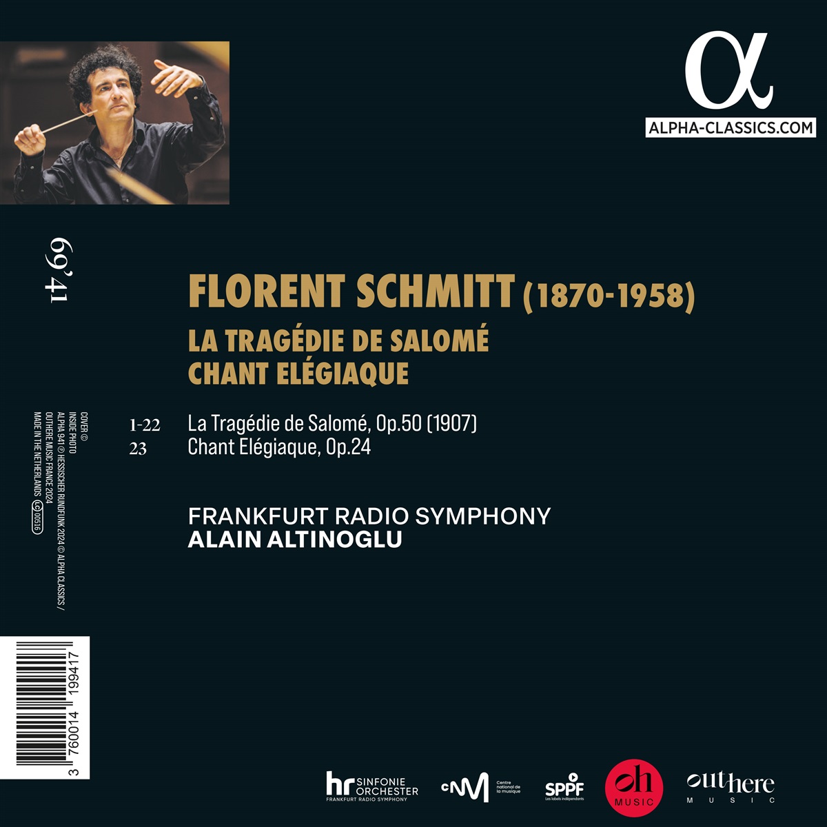 1907 komponierte Florent Schmitt die Musik zu einem von Loïe Fuller getanzten „Mimodrame": La Tragédie de Salomé. Seine Partitur strotzt vor Farbe, Energie und Sinnlichkeit - und auch vor orientalischen Einflüssen, die von seinen Reisen nach Marokko und Konstantinopel herrühren, wo er die heulenden Derwische entdeckte. In der Schlussszene erklingt der herzzerreißende „Chant d'Aïça", eine orientalische Melodie, die von einer Sopranistin gesungen wird. Obwohl diese Musik für die Zuhörer von 1907 kühn und modern war, erregte sie die Bewunderung eines anderen Komponisten, Igor Strawinsky, dem Schmitt die Symphonische Suite widmete, die er später aus dem Werk entwickelte. Alain Altinoglu, der seit 2021 Chefdirigent des hr-Sinfonieorchesters ist, hat sich jedoch für die Einspielung der Originalfassung dieses Meilensteins der französischen Musik des frühen 20. Jahrhunderts entschieden. Der wunderschöne Chant élégiaque in der Fassung von 1911 für Cello und großes Orchester rundet dieses Programm ab.