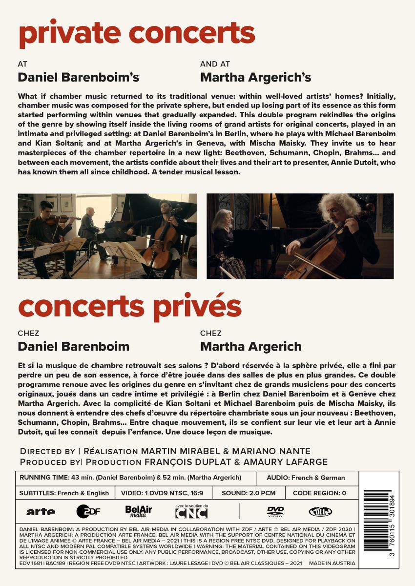 Ursprünglich wurde Kammermusik (wie der Name suggeriert) für den privaten Bereich daheim konzipiert und komponiert. Sie verlor diesen Teil ihres Wesens, als die Werke in immer größeren Konzertsälen ihren Einzug fanden. Dieses Doppelprogramm lässt die Ursprünge des Genres wieder aufleben, indem es Weltstars – Daniel Barenboim in Berlin und bei Martha Argerich in Genf – daheim bei intimen, hochkarätig besetzten Konzerten zeigt. Sie laden uns ein, Meisterwerke des Repertoires in einem intimen Rahmen wiederzuentdecken: Beethoven, Schumann, Chopin, Brahms. Und zwischen den einzelnen Sätzen erzählen die Musikerinnen und Musiker von ihrem Leben und ihrer Kunst.