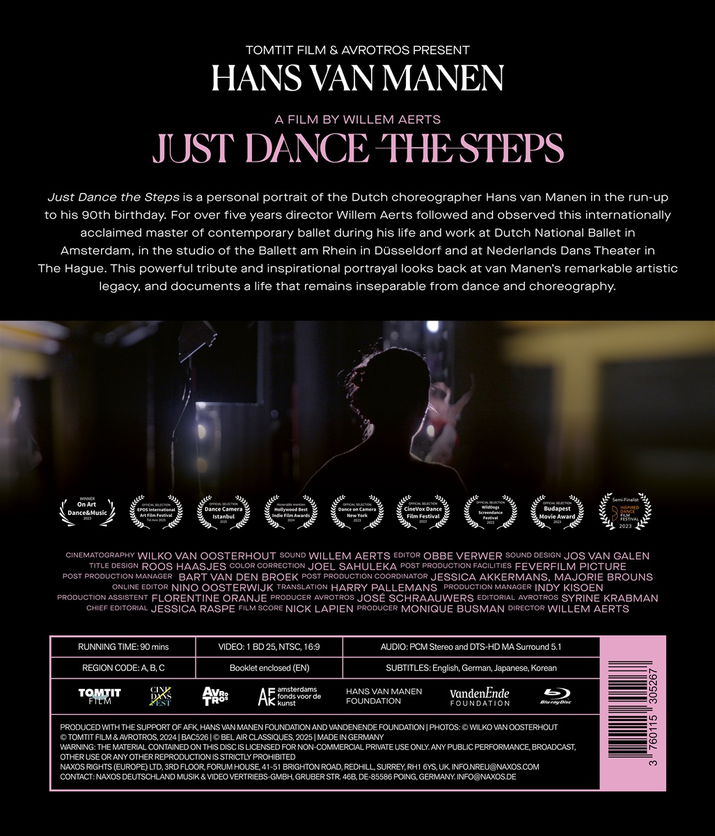 Just Dance the Steps ist ein persönliches Porträt des niederländischen Choreographen Hans van Manen im Vorfeld seines 90. Geburtstags.. Mehr als fünf Jahre lang hat Regisseur Willem Aerts den international gefeierten Meister des zeitgenössischen Balletts in seinem Leben und seiner Arbeit am Dutch National Ballet in Amsterdam, im Studio des Ballett am Rhein in Düsseldorf und am Nederlands Dans Theater in Den Haag begleitet und beobachtet. Diese eindrucksvolle Hommage und inspirierende Darstellung blickt auf van Manens bemerkenswertes künstlerisches Vermächtnis zurück und dokumentiert ein Leben, das untrennbar mit Tanz und Choreografie verbunden bleibt.